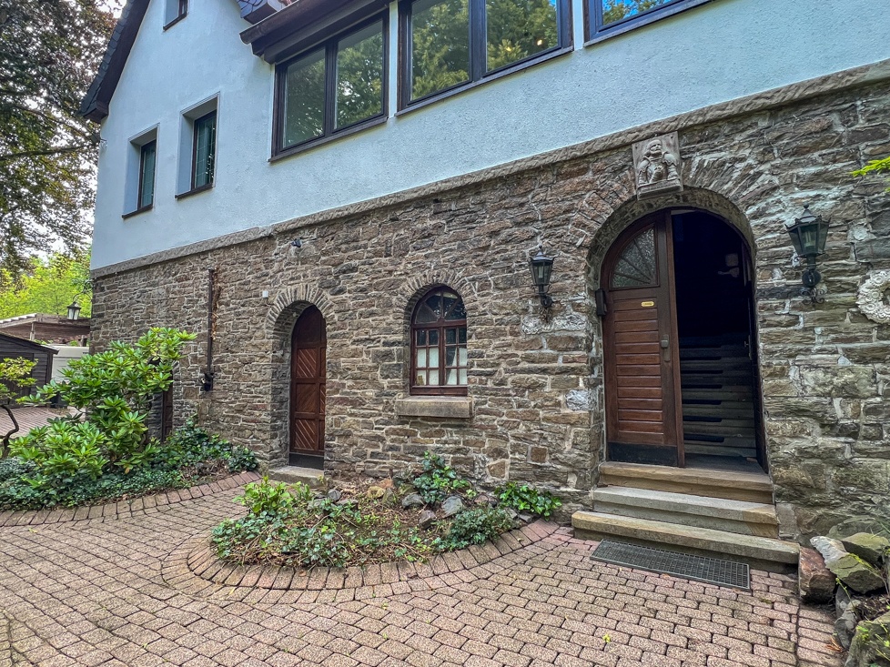 Zugang: Massive Doppeleichentür mit zus. Einbruchsschutz, Natursteintreppe