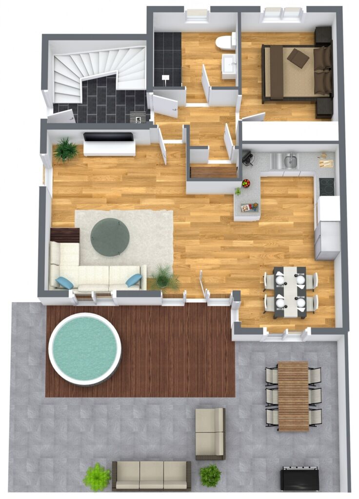 Das Haus erstreckt sich über 3 Ebenen und bietet auf ca. 190 m² Wohnfläche sowie ca. 70 m² Nutzfläche insgesamt 6 Zimmer – ideal für bis zu 5 Personen.