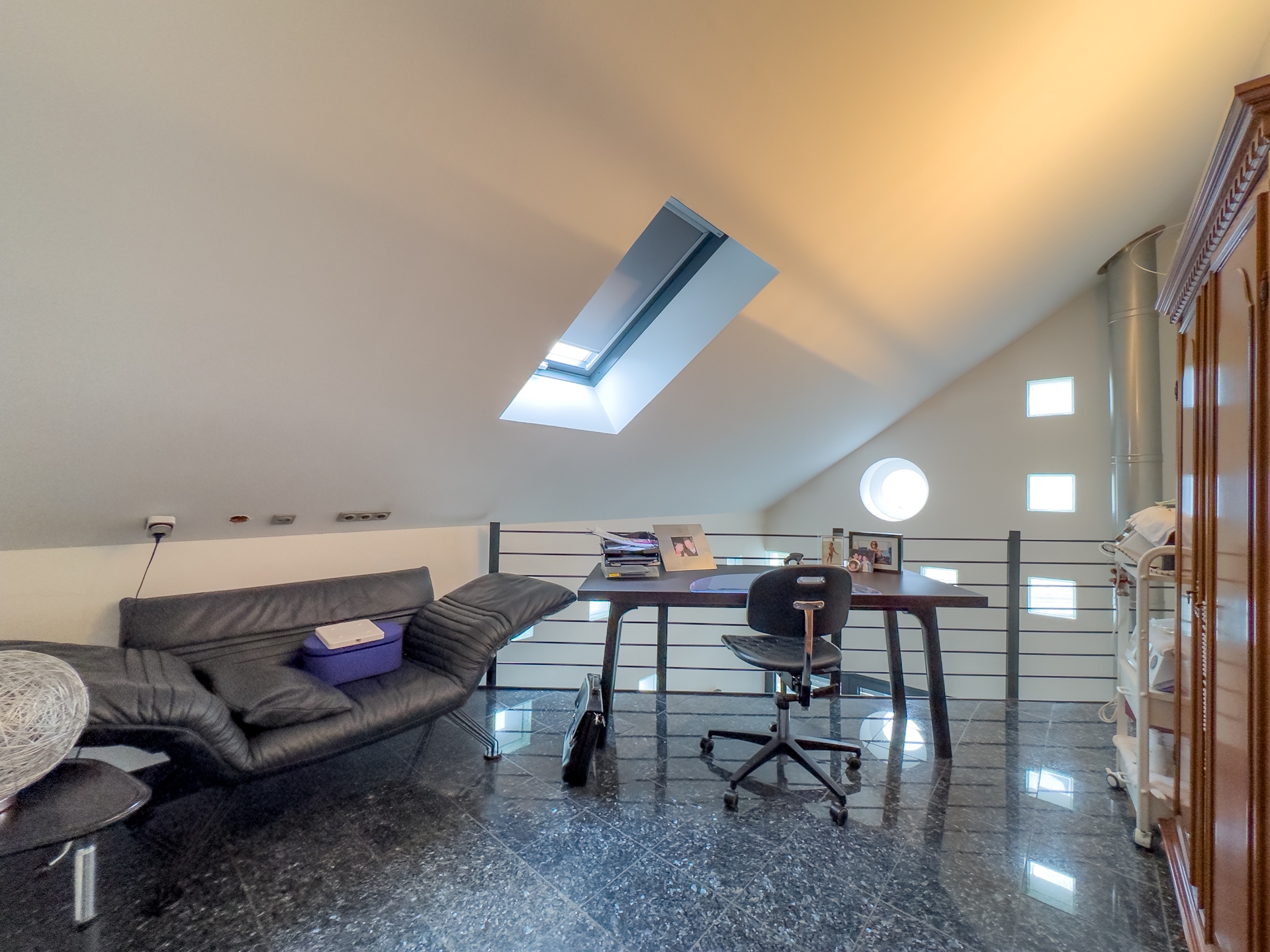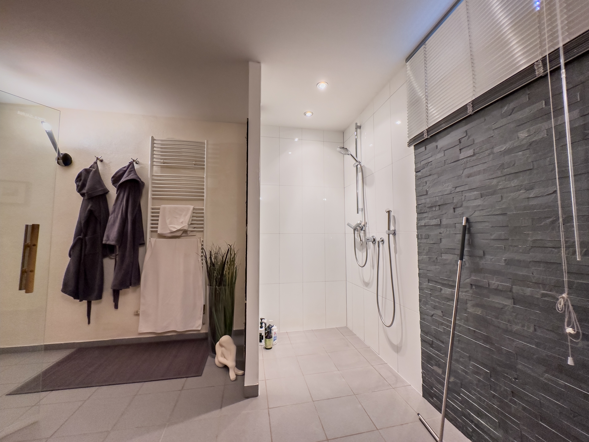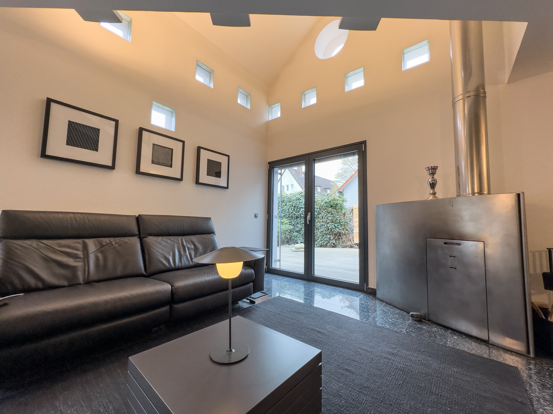 Willkommen in Ihrer neuen Traumwohnung, die durch moderne Ausstattung und stilvolle Designelemente besticht. Diese exquisite Wohnung ist als Anbau an ein Mehrfamilienhaus konzipiert und bietet Ihnen die perfekte Kombination aus privatem Rückzugsort und geselligem Leben. Der eigene Gartenteil ist ein wahres Paradies für Naturliebhaber. Ein kleiner Teich, umgeben von üppigem Grün, lädt zum Verweilen und Entspannen ein. Das großzügige Holzdeck ist der ideale Ort für Sonnenliegen und bietet ausreichend Platz für eine Outdoorküche perfekt für gesellige Grillabende mit Freunden und Familie. Betreten Sie das lichtdurchflutete Erdgeschoss, wo die offene Küche mit einem einladenden Essplatz auf Sie wartet. Bodentiefe Fenster ermöglichen einen nahtlosen Übergang zur Terrasse und lassen viel Tageslicht herein. Ein stilvolles Gäste-WC sorgt für zusätzlichen Komfort. Das Wohnzimmer, ausgestattet mit einem edlen Design-Edelstahlkamin, ist ein Highlight, das Gemütlichkeit und Eleganz vereint. Ein flexibler Fitness- oder Arbeitsbereich mit direktem Zugang zur Terrasse rundet das Erdgeschoss ab und bietet die Möglichkeit, Arbeit und Freizeit harmonisch zu verbinden. Im Obergeschoss erwarten Sie zwei geschmackvoll gestaltete Räume. Ein modernes Gäste-Badezimmer mit Dusche sorgt für Komfort und Privatsphäre. Ein besonderes Highlight ist die Galerie, die sich ideal als Homeoffice eignet und Ihnen einen inspirierenden Arbeitsplatz bietet. Das Kinderzimmer bietet zwei coole Schlafkojen die jeweils über eine Leiter zu erreichen sind. Das Schlafzimmer ist ein Rückzugsort der Extraklasse, ausgestattet mit einem direkten Zugang zum luxuriösen Wellnessbadezimmer hier können Sie nach einem langen Tag entspannen und neue Energie tanken. Der Keller bietet nicht nur praktische Lagermöglichkeiten, sondern auch eine eigene Sauna mit Dusche Ihr persönlicher Wellnessbereich. Zudem gelangen Sie bequem in die geräumige Tiefgarage, die ausreichend Platz für Ihr Fahrzeug, Fahrräder eine Brauchwasseranlage (Regenwasser) und andere Dinge bietet. Dieses moderne Haus verbindet stilvolles Wohnen mit einem hohen Maß an Lebensqualität. Die durchdachte Raumaufteilung, die hochwertigen Materialien und die zahlreichen Designelemente schaffen eine harmonische Atmosphäre, die zum Verweilen und Genießen einlädt. Überzeugen Sie sich selbst von diesem einzigartigen Angebot und vereinbaren Sie noch heute einen Besichtigungstermin. Ihr neues Zuhause wartet auf Sie!