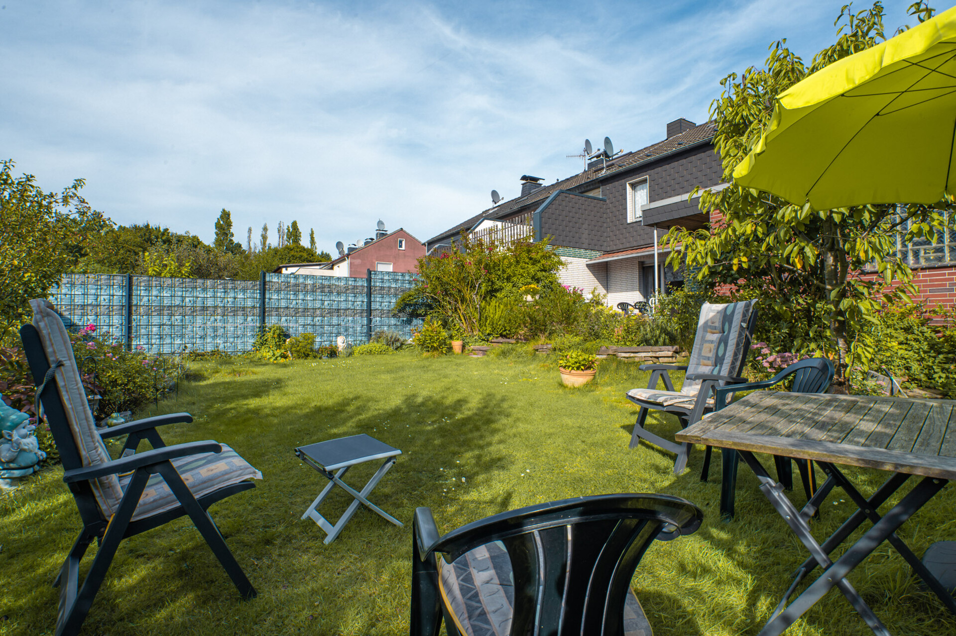 – Garten: Großzügige Fläche mit Privatsphäre durch Hecken und Zaun