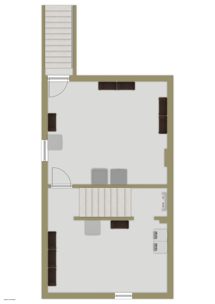Der Keller umfasst zwei Räume – Waschküche und Heizungsraum – und bietet zusätzlichen Stauraum. Ein direkter Zugang zum Garten macht ihn besonders praktisch.
