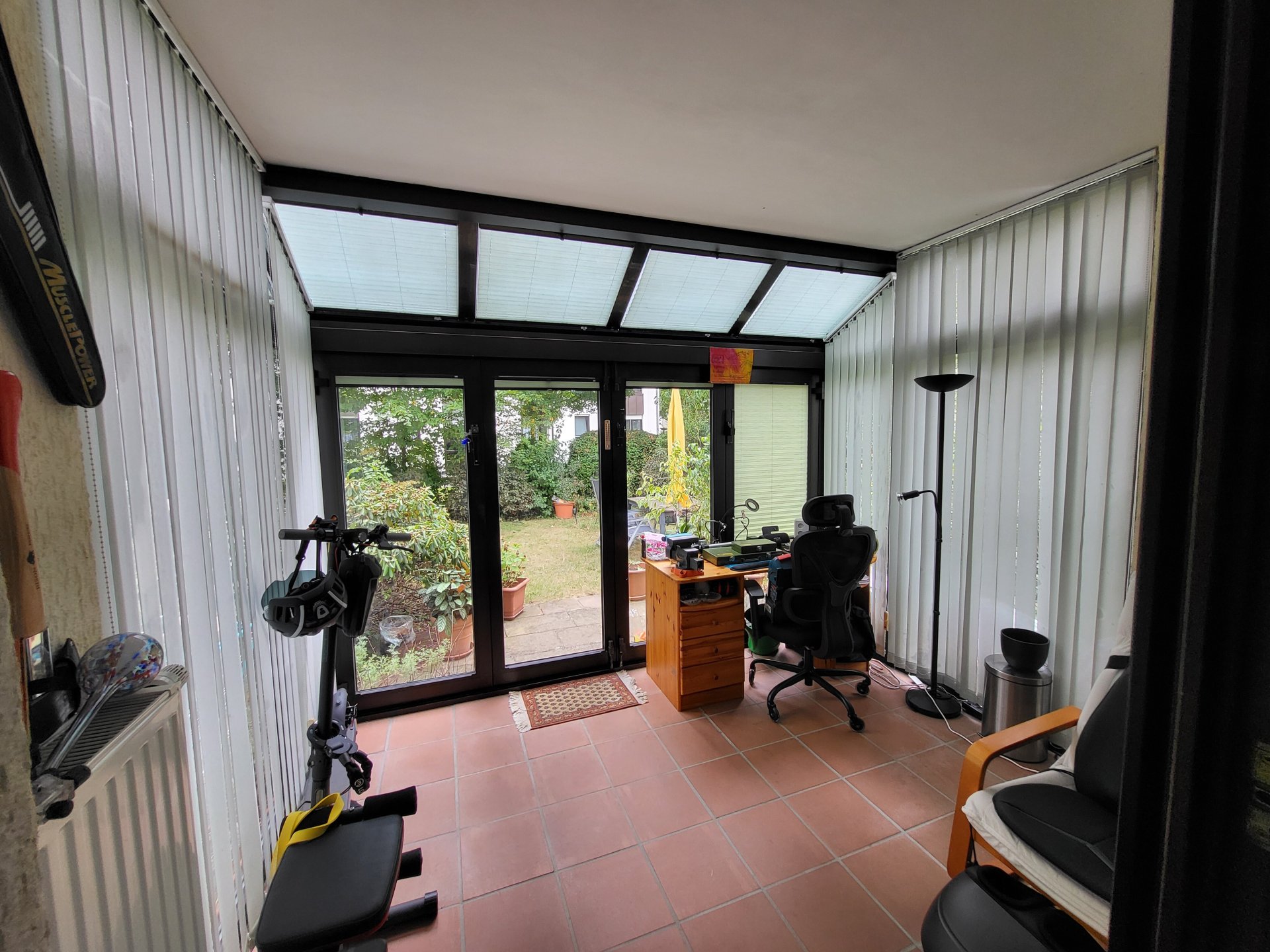 Der großzügige Wohnbereich mit schönem Parkettboden bildet das Herzstück der Wohnung. Von hier aus gelangt man direkt in den lichtdurchfluteten Wintergarten, der mit Sonnenschutzvorhängen ausgestattet ist. Dank der integrierten Heizung lässt sich dieser Raum auch an kühleren Tagen als vollwertiger Wohnraum wunderbar nutzen. Ob als gemütlicher Rückzugsort, Winterlounge oder erweiterter Wohnbereich. Eine Glastür trennt ihn stilvoll vom Wohnzimmer und sorgt für eine helle, offene Atmosphäre.