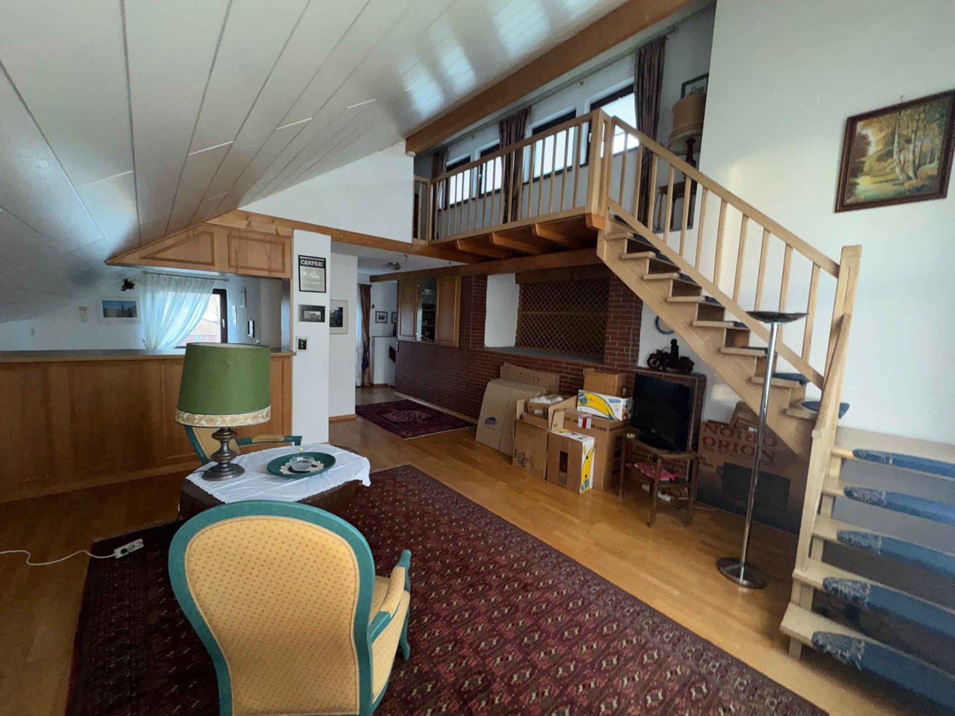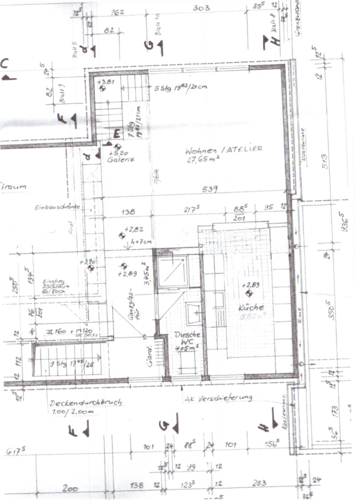 Atelierraum, Küche, Duschbad und Galerie Empore über integrierte Treppe