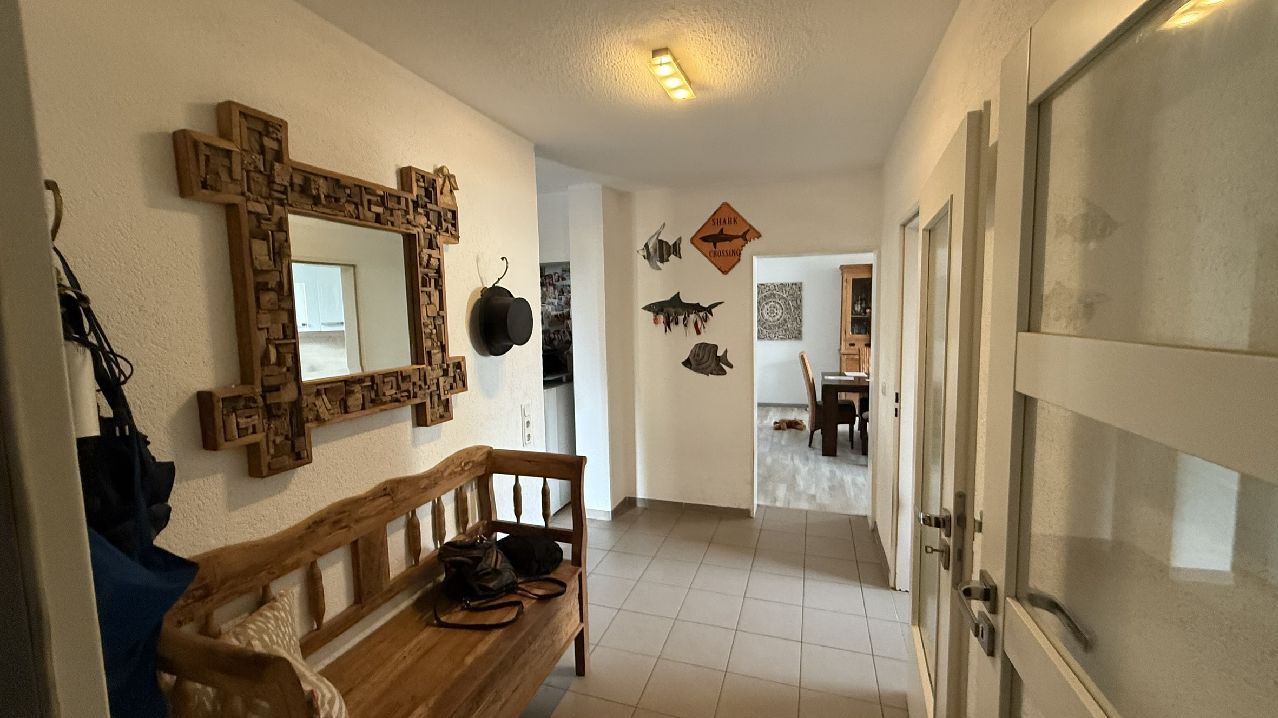 Helle Räume, Fliesen- und Laminatfußbodenoberbelag, Kunststofffenster mit Isolierverglasung, Gaszentralheizung, Wohnflur, Küche mit Tageslicht, Rollläden, Wohn-/Esszimmer, Büro, 2 innenliegende Bäder, eintes mit Badewanne und Dusche, das zweite mit Duschmöglichkeit (befindet sich im Rohbau), Schlafzimmer, Kinderzimmer, Ankleidezimmer, Rauchwarnmelder, ca. 105 m² Kellgergeschoss mit Vorrats/Putzaum, Hobbyraum/Hausanschlussraum, Heizungsraum mit großzügigem Ausgang zum als Garten genutzten Außenbereich, Werkstattraum.