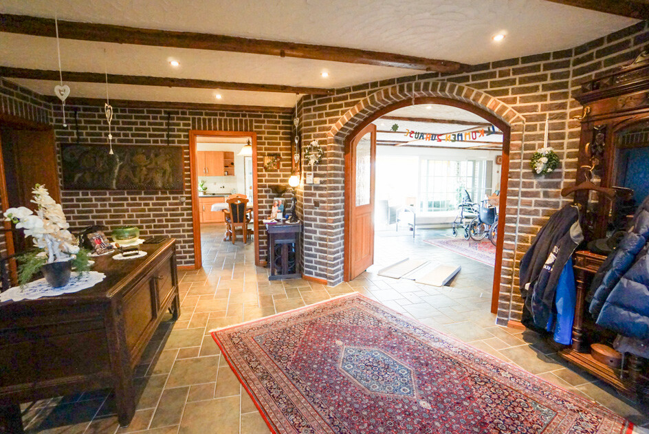 Im Inneren des Hauses erwarten Sie großzügige, geflieste Räume, die viel Platz für individuelle Gestaltungsmöglichkeiten bieten. Das Haus verfügt über drei Garagen und einen wohnlich ausgebauten Keller. Jeder Bereich des Hauses ist mit Liebe zum Detail gestaltet und bietet hohen Wohnkomfort.