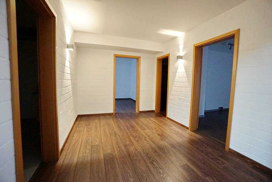 Der Keller wurde als separate Büroeinheit genehmigt und bietet einen großzügigen Empfang mit Tageslicht, zwei Büroräumen mit entsprechender Verkabelung und Tageslicht sowie einem Archiv/Kellerraum und dem Raum für die Hausanschlüsse und Heizung.