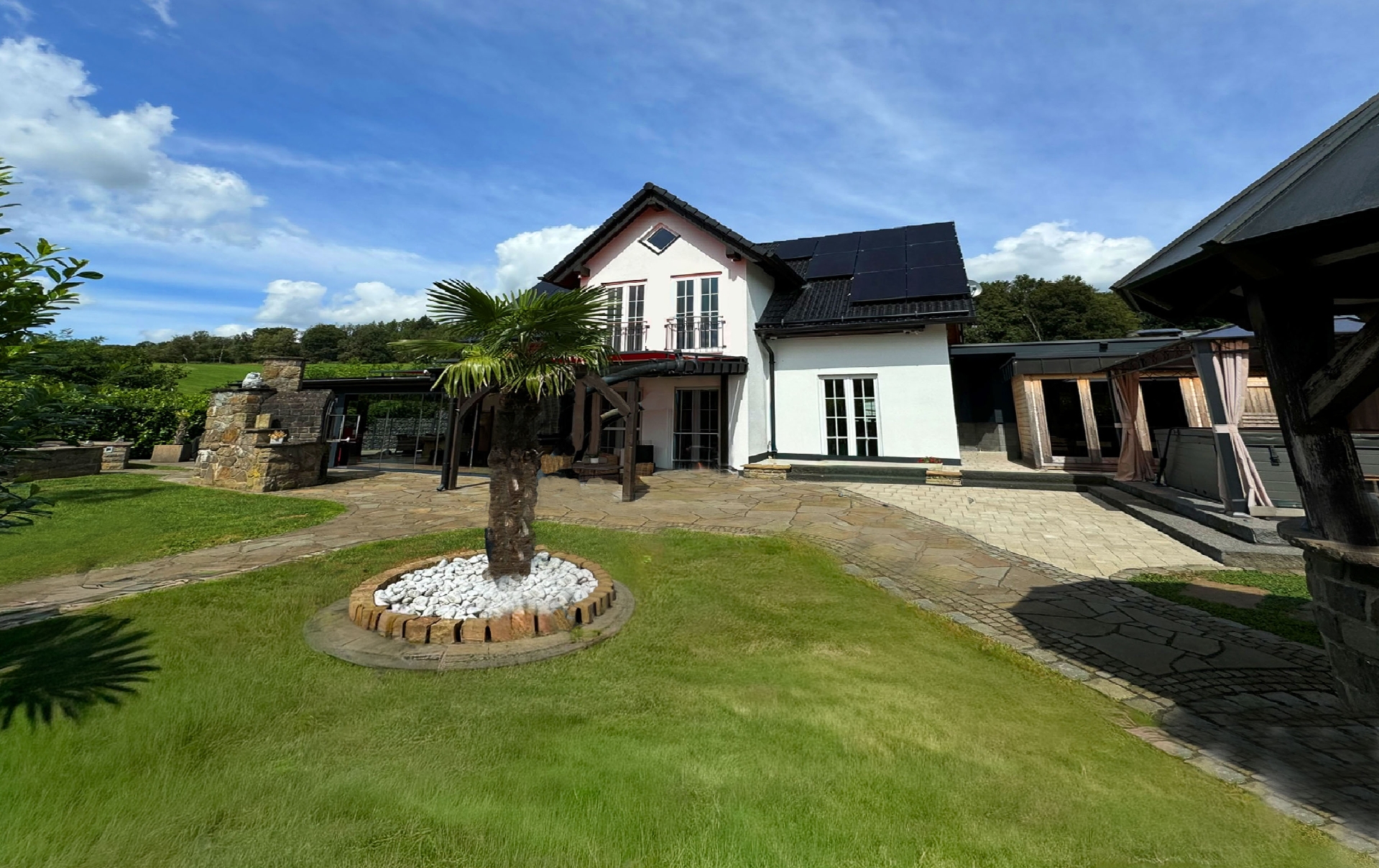 Aus dem Wohnbereich gelangen Sie in den angrenzenden Warmwintergarten mit isolierter Bodenplatte, Heizstrahlern, elektrischen Aufdachmarkisen und Blick in den liebevoll gestalteten Garten. Hier lässt es sich das ganze Jahr über entspannen.