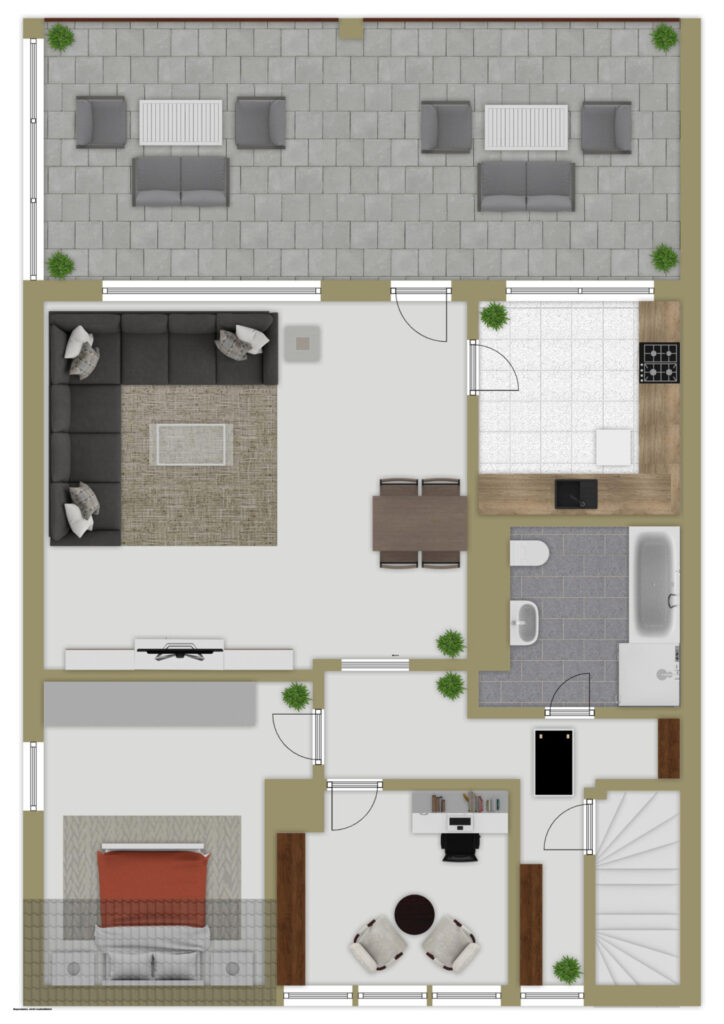 Ob ruhiges Schlafzimmer, inspirierendes Homeoffice oder Raum für Gäste – die drei Zimmer im Dachgeschoss passen sich Ihrem Lebensstil an. Ein zweites Badezimmer sorgt für Komfort, ein großzügiger Balkon bringt Luft und Weitblick ins Obergeschoss. Und: Ein praktischer Hauswirtschaftsraum erleichtert den Alltag ganz nebenbei.