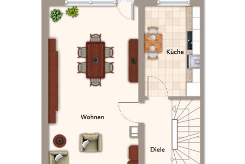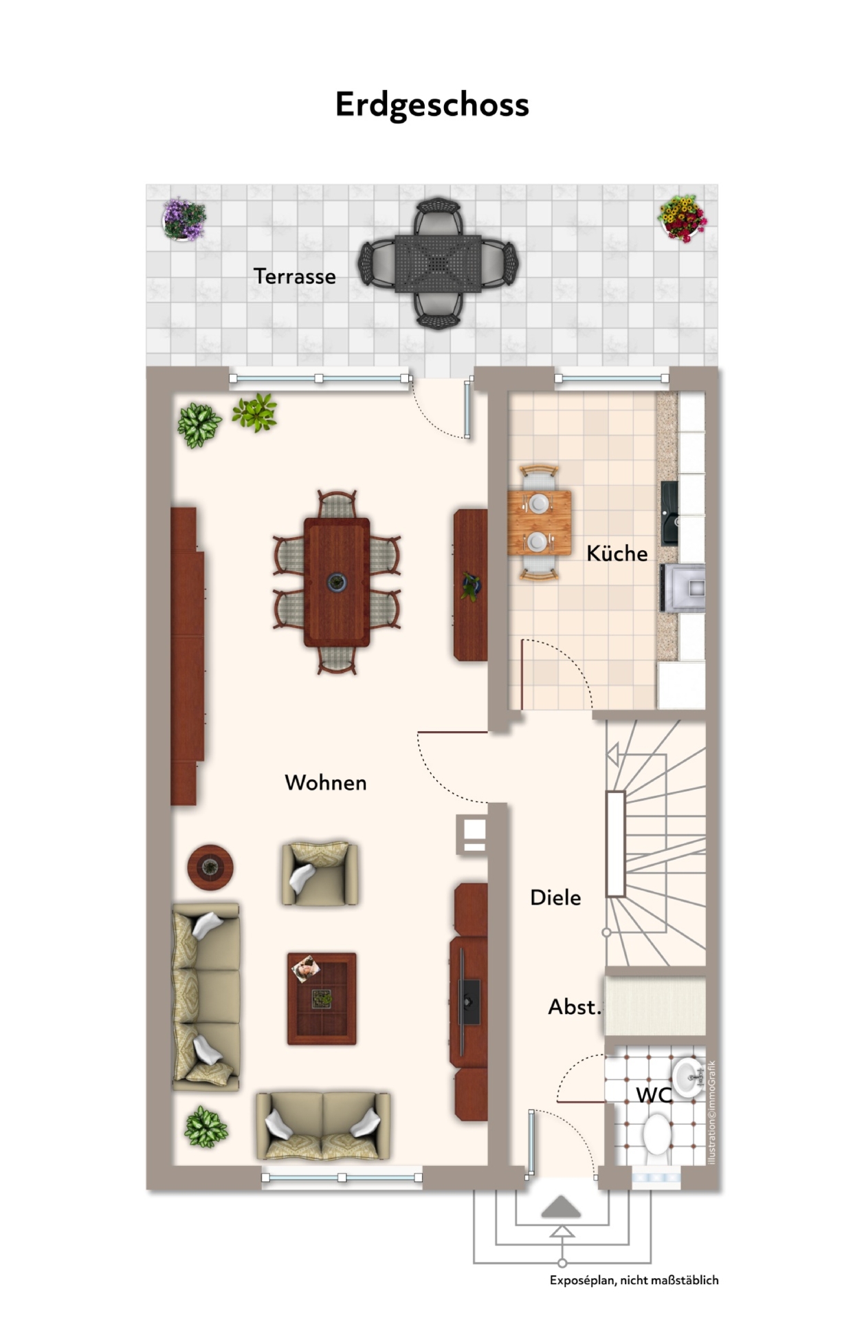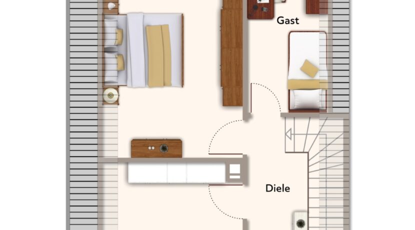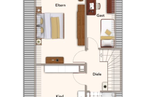 •     Drei Schlafzimmer und ein Tageslichtbad im Obergeschoss