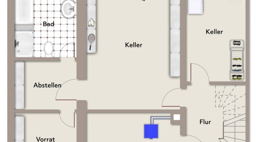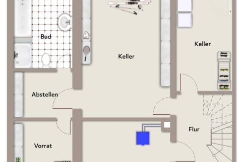 Der vollunterkellerte Bereich bietet nicht nur viel Stauraum und Platz für Hobby oder Hauswirtschaft – hier befindet sich auch ein zusätzliches Bad, das den Komfort des Hauses deutlich erhöht.