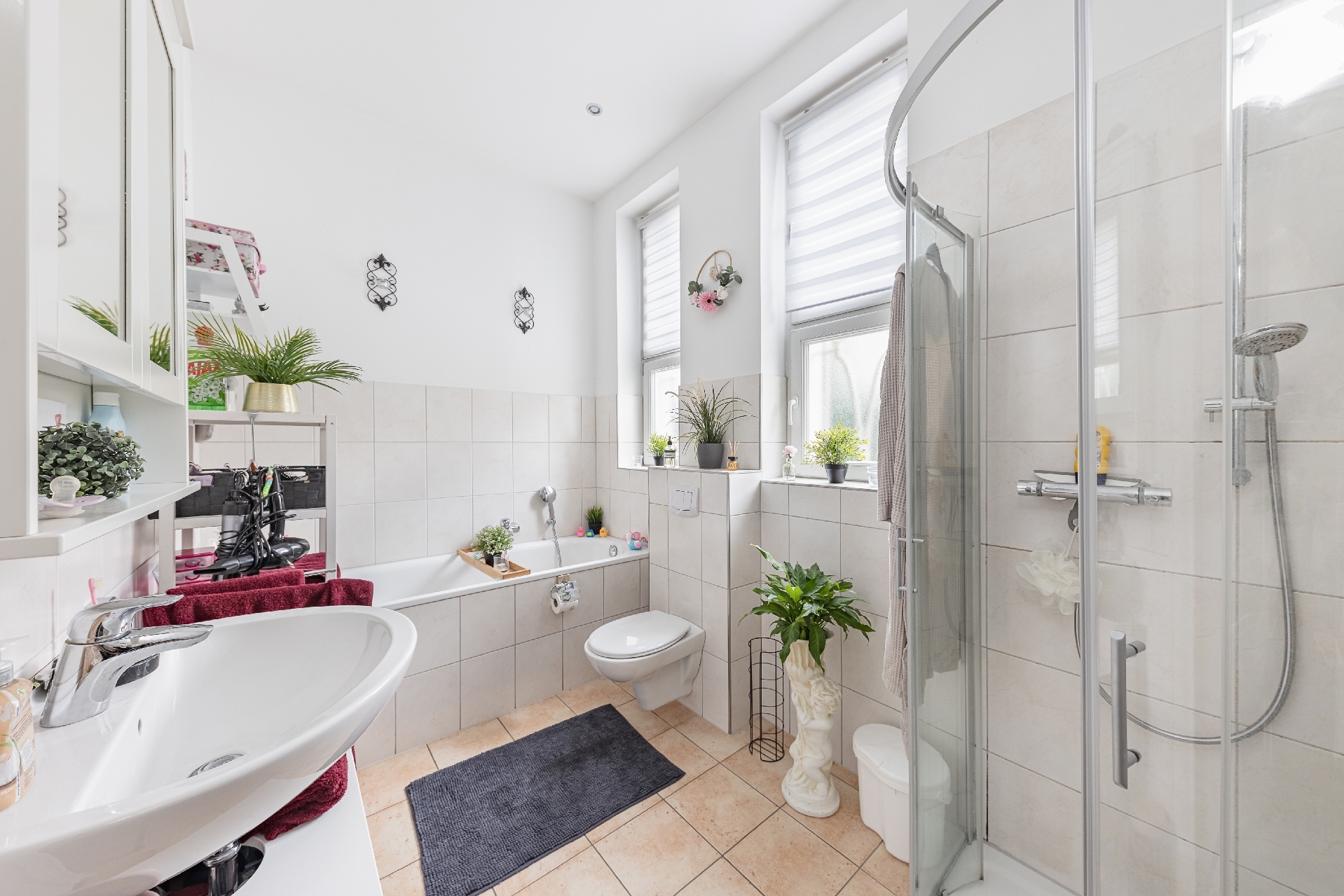 * OG: 4 Zimmer, Küche, Diele, Badezimmer, separates WC, Balkon sowie Zugang zum Dachgeschoss mit einem WC und einem weiteren Zimmer