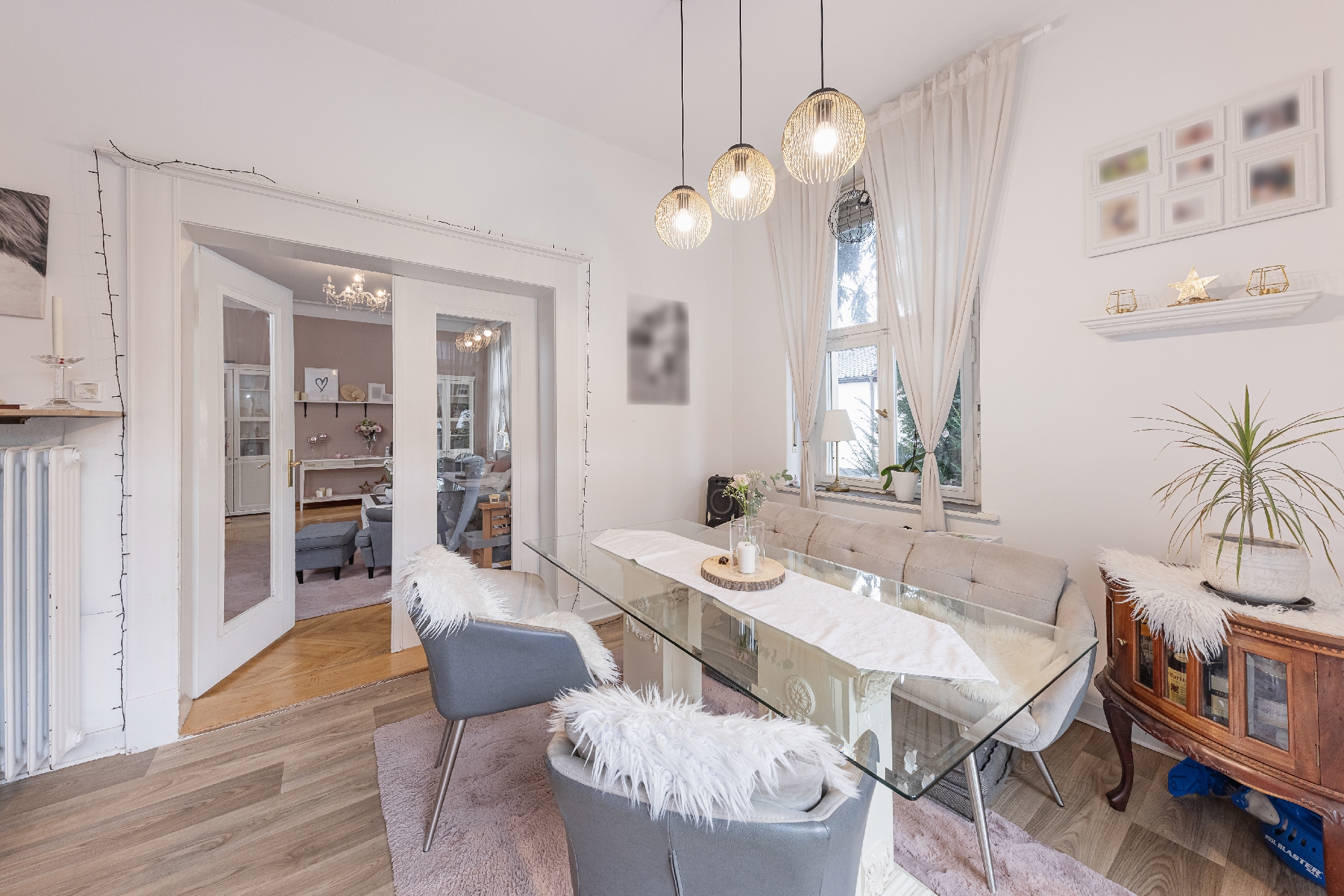 Das freistehende Zweifamilienhaus bietet einen idealen und familienfreundlichen Grundriss. Geräumige Zimmer schenken viel Freiraum und den benötigten Platz für die ganze Familie. Zudem überzeugt die Immobilie mit einem schönen Gartengrundstück, einem Balkon, einer Terrasse und einer Menge Altbaucharme.