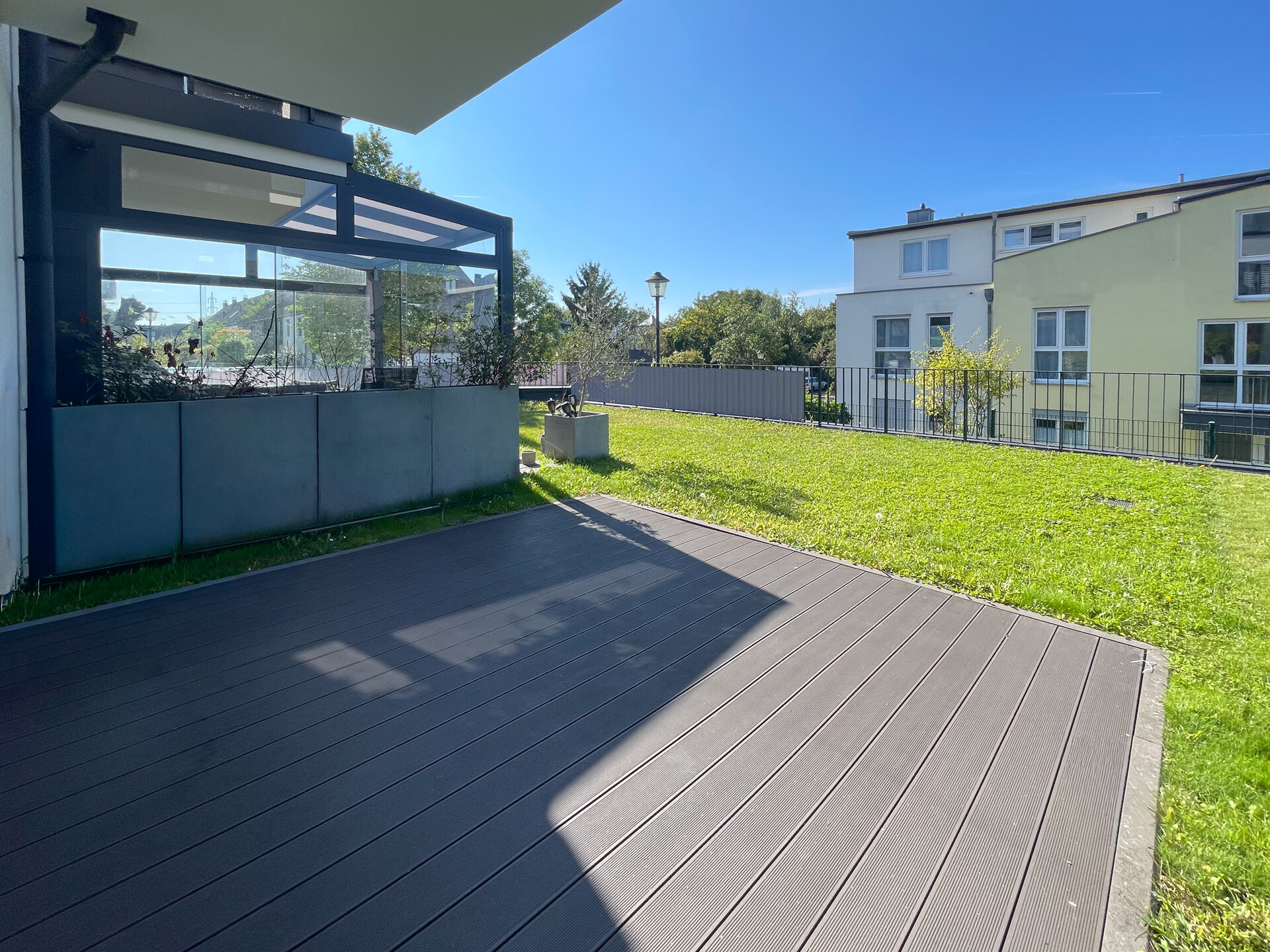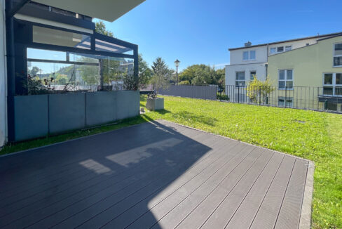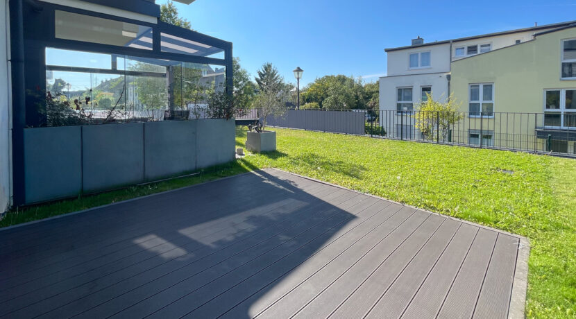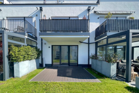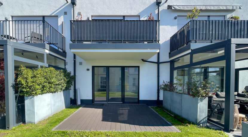 Ein besonderes Highlight ist die großzügige Terrasse (ca. 3 x 3 m), die ganztägig von der Sonne verwöhnt wird und sich hervorragend für entspannte Stunden im Freien eignet. Ein nachträglicher Ausbau zu einem Wintergarten ist problemlos möglich und bietet zusätzlichen Gestaltungsspielraum.