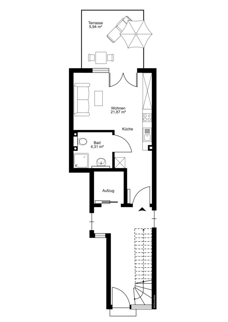 – Terrasse mit möglichem Ausbau als Wintergarten
