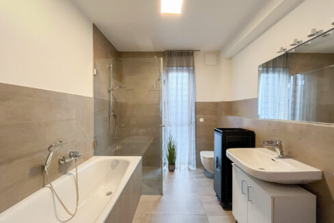 Das Tageslichtbad, verfügt über eine Badewanne, eine Dusche und hochwertige Sanitäranlagen. Das Schlafzimmer bietet ausreichend Platz für ein großes Bett und einen Kleiderschrank und besticht durch seine ruhige Lage. Das zusätzliche Zimmer eignet sich perfekt als Kinderzimmer, Gästezimmer oder Homeoffice.