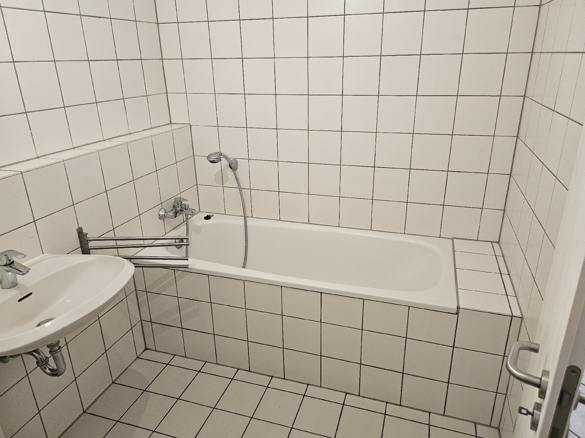 – weiß gefliestes Duschbad sowie Wannenbad