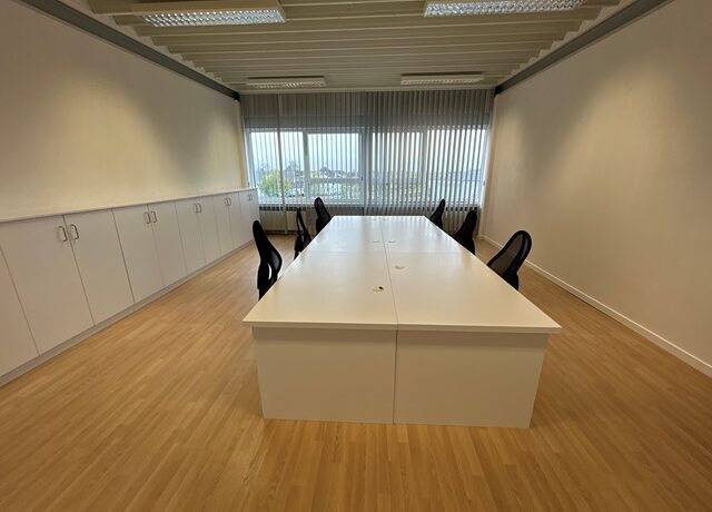 Die zur Vermietung stehende Gewerbefläche umfasst insgesamt ca. 120 m² und befindet sich in einem gepflegten, funktional ausgestatteten Bürogebäude. Die Fläche ist flexibel nutzbar und kann auf Wunsch in mehrere Einheiten unterteilt werden. Derzeit gliedert sich der Bereich in ein kleines Büro mit ca. 14 m², ein mittleres Büro mit ca. 47 m² sowie ein weiteres, großzügiges Büro mit ca. 70 m². Damit bietet das Objekt vielfältige Nutzungsmöglichkeiten – von Einzel- und Teambüros bis hin zu projektorientierten Arbeitsbereichen.