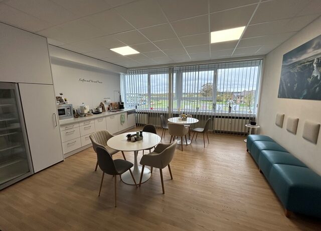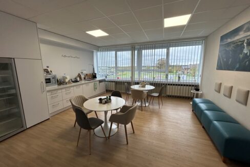 Zusätzlich stehen den Mietern ein gemeinsam genutzter Besprechungsraum sowie eine gemeinschaftliche Cafeteria zur Verfügung, die den Arbeitsalltag erleichtern und eine angenehme Arbeitsatmosphäre schaffen.