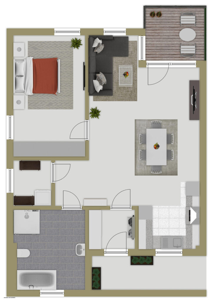Schon beim Ankommen spüren Sie den Unterschied: Der private Wohnungseingang vermittelt ein Gefühl von Eigenständigkeit und Ruhe – hier beginnt Ihr persönlicher Freiraum. Kein gemeinsames Treppenhaus, kein Kompromiss in Sachen Privatsphäre – einfach ankommen, abschalten und wohlfühlen.
