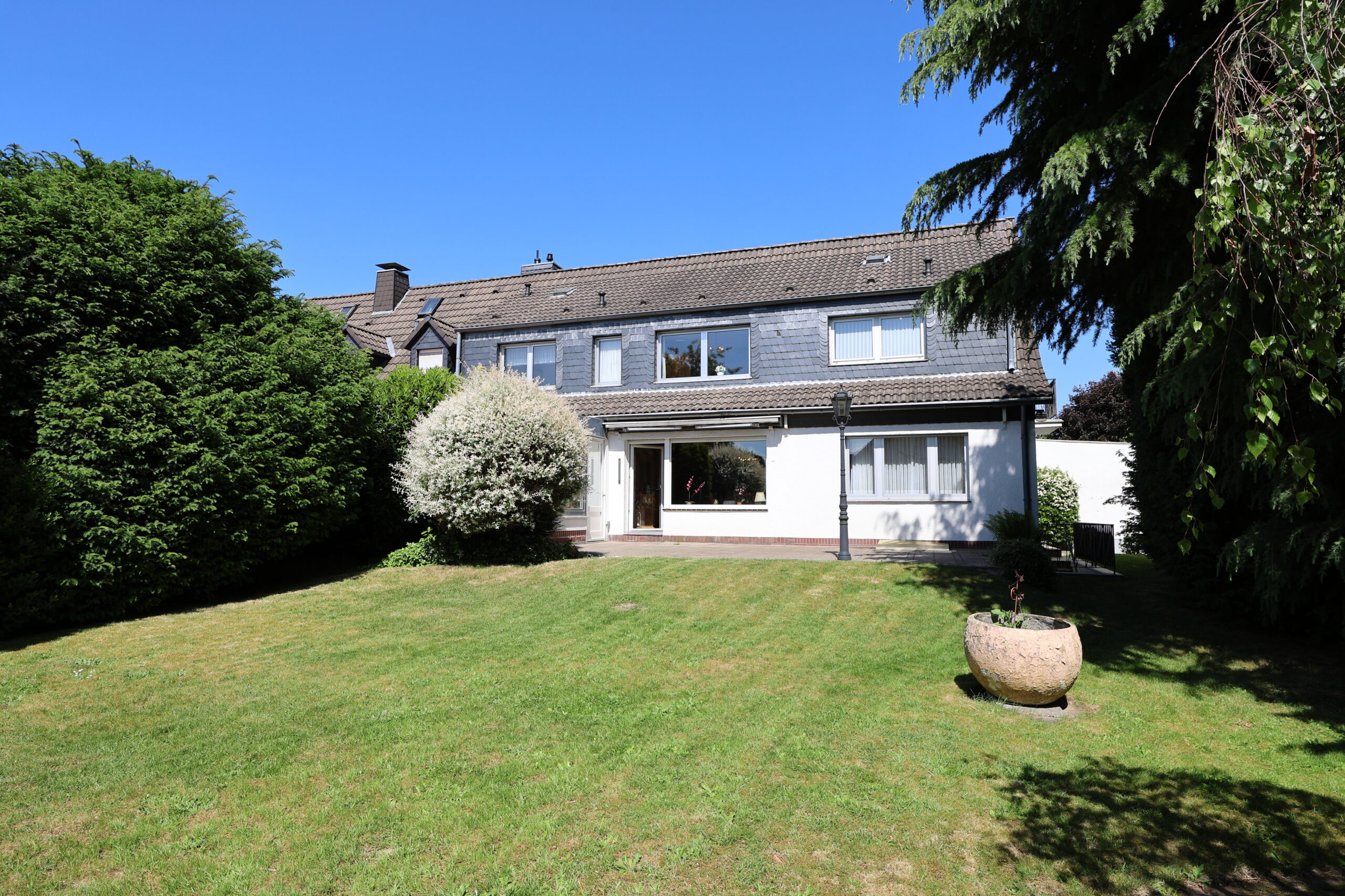 Suchen Sie für Ihre Familie ein großzügiges Eigenheim mit Garten in einer ruhigen, aber dennoch zentralen Schlebuscher Lage? Dann könnte Ihre Suche hier zu Ende sein. Der Ursprung dieser massiv errichteten und unterkellerten Doppelhaushälfte liegt im Jahr 1955. Das Haus ist 1965 durch einen Anbau und die angrenzende Garage erweitert worden. Weiterhin ist das Haus in den 70-er und 80-er Jahren im Dachgeschoss durch mehrere Gauben vergrößert worden, was eine Beeinträchtigung durch Dachschrägen nahezu verhindert. In den 90-er Jahren kam dann noch ein praktischer Wintergarten hinzu.