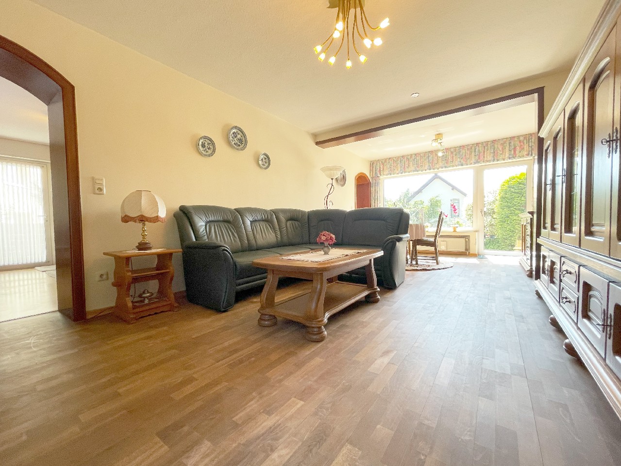 Das Haus besticht durch gemütliche Räume, die ein positives Wohngefühl vermitteln. Auch ein Mehrgenerationen-Wohnen ist denkbar, da sowohl im Erd- als auch im Dachgeschoss jeweils ein Wohnzimmer, eine Küche und ein Bad vorhanden sind. Weiterhin befindet sich eine weitere Dusche mit einem WC und einer Waschmöglichkeit im Kellergeschoss. Das Erdgeschoss verfügt im nachträglichen Anbau bzw. zur Giebelseite auch über einen zweiten Hauszugang.