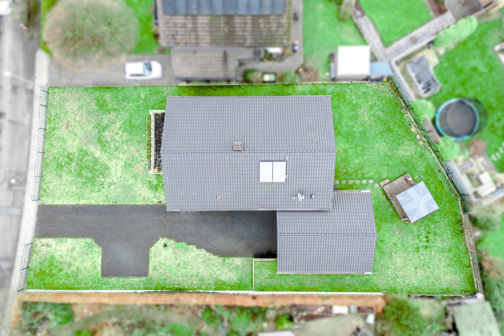 Der Garten umschließt das Haus und bietet neben der Hauptterrasse am Wohnzimmer eine weitere Terrasse im rückwärtigen Bereich. Die Außenflächen ermöglichen verschiedene Nutzungsmöglichkeiten – von Erholung bis Freizeitgestaltung.