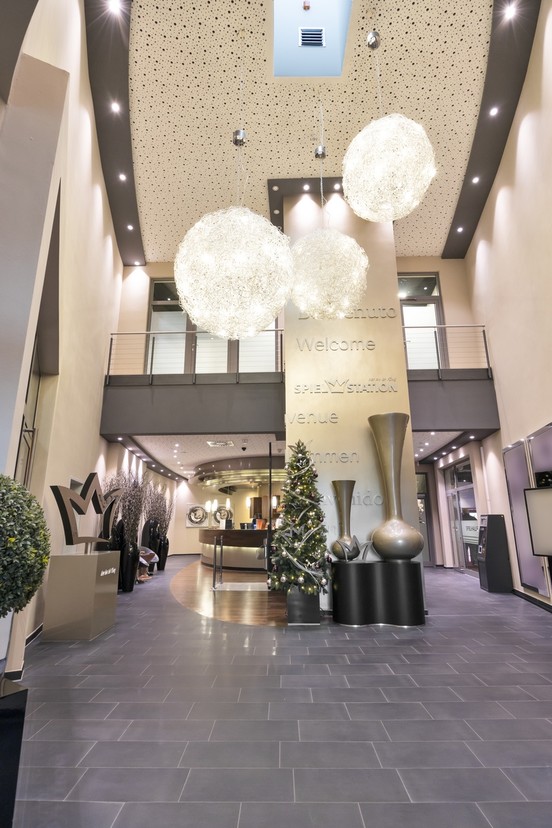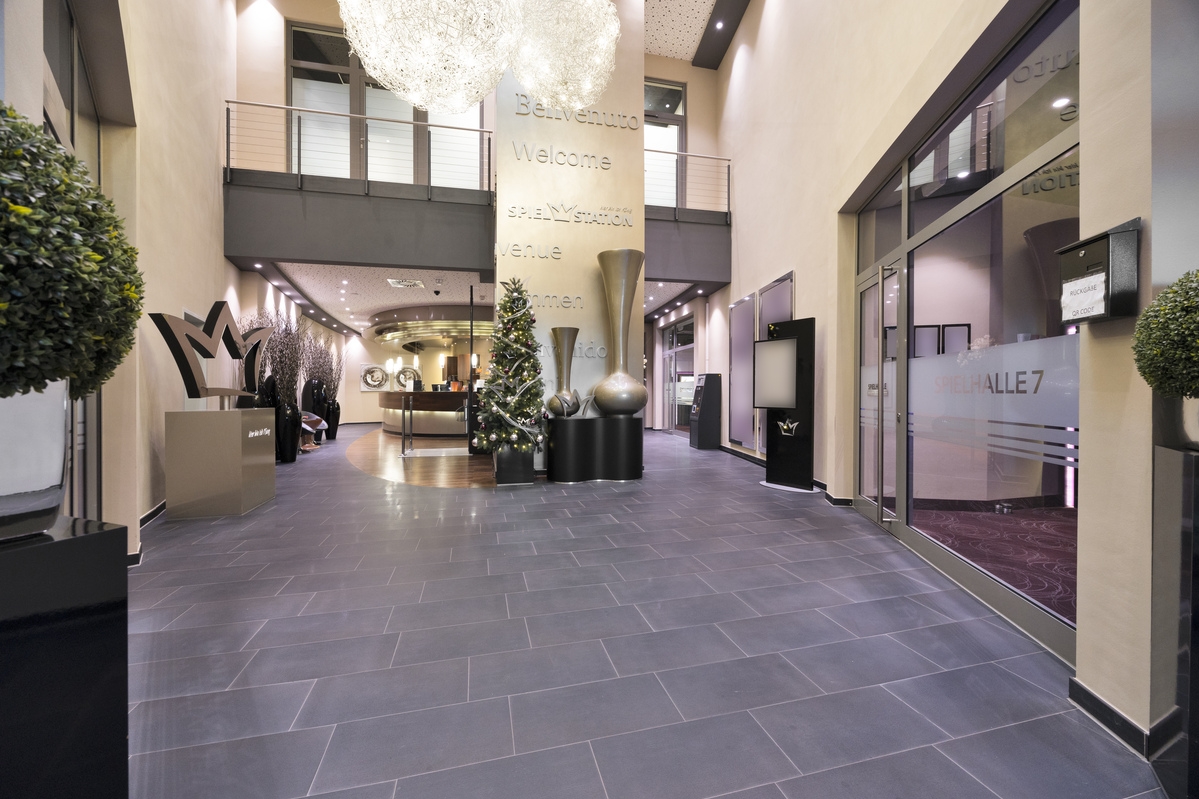 Im Kellergeschoss sowie im linken Bereich des Erdgeschosses befindet sich eine namhafte Spielothek der Schmidt Gruppe, einem der führenden Betreiber in der deutschen Freizeit- und Entertainmentbranche. Die Flächen sind modern und hochwertig ausgebaut und vermitteln bereits im Eingangsbereich durch großzügige Raumhöhen, eine offene Galeriegestaltung sowie hochwertige Bodenbeläge einen repräsentativen Eindruck. Die Spielflächen sind klar strukturiert und designorientiert gestaltet. Akzentuierte Beleuchtungselemente, stilvolle Raumteiler und separate Spielbereiche schaffen eine angenehme Aufenthaltsqualität. Ergänzt wird das Angebot durch großzügige Lounge- und Aufenthaltszonen sowie modern ausgestattete Sanitärbereiche. Die technische Ausstattung inklusive Lüftungs- und Klimaanlagen entspricht zeitgemäßen Standards.