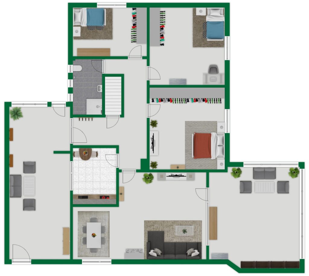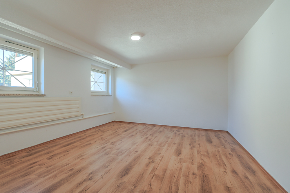 Das Untergeschoss verfügt über drei beheizte Hobbyräume, die vielseitig nutzbar sind – etwa als Gästezimmer, Büro, Werkstatt oder Fitnessbereich. Zudem stehen hier eine Waschküche, ein Badezimmer mit Dusche, ein separates WC sowie der Heizungskeller zur Verfügung.