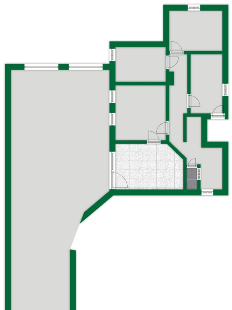 Über eine Treppe von der Einfahrt gelangt man in das eigentliche Wohngeschoss. Hier befinden sich eine Küche mit moderner Einbauküche, ein Badezimmer (mit Fenster, Dusche, WC und Waschtisch), ein Wintergarten sowie drei weitere Zimmer, die flexibel als Schlafzimmer, Arbeitszimmer oder Wohnzimmer genutzt werden können.