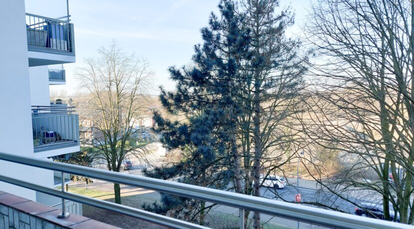 Ein geschützer Südbalkon bietet einen weiten Blick ins Grüne und lädt zum Aufenthalt ein. Sie haben sowohl vom Wohn-, als auch vom Schlafzimmer und von der Küche diesen freien Ausblick.