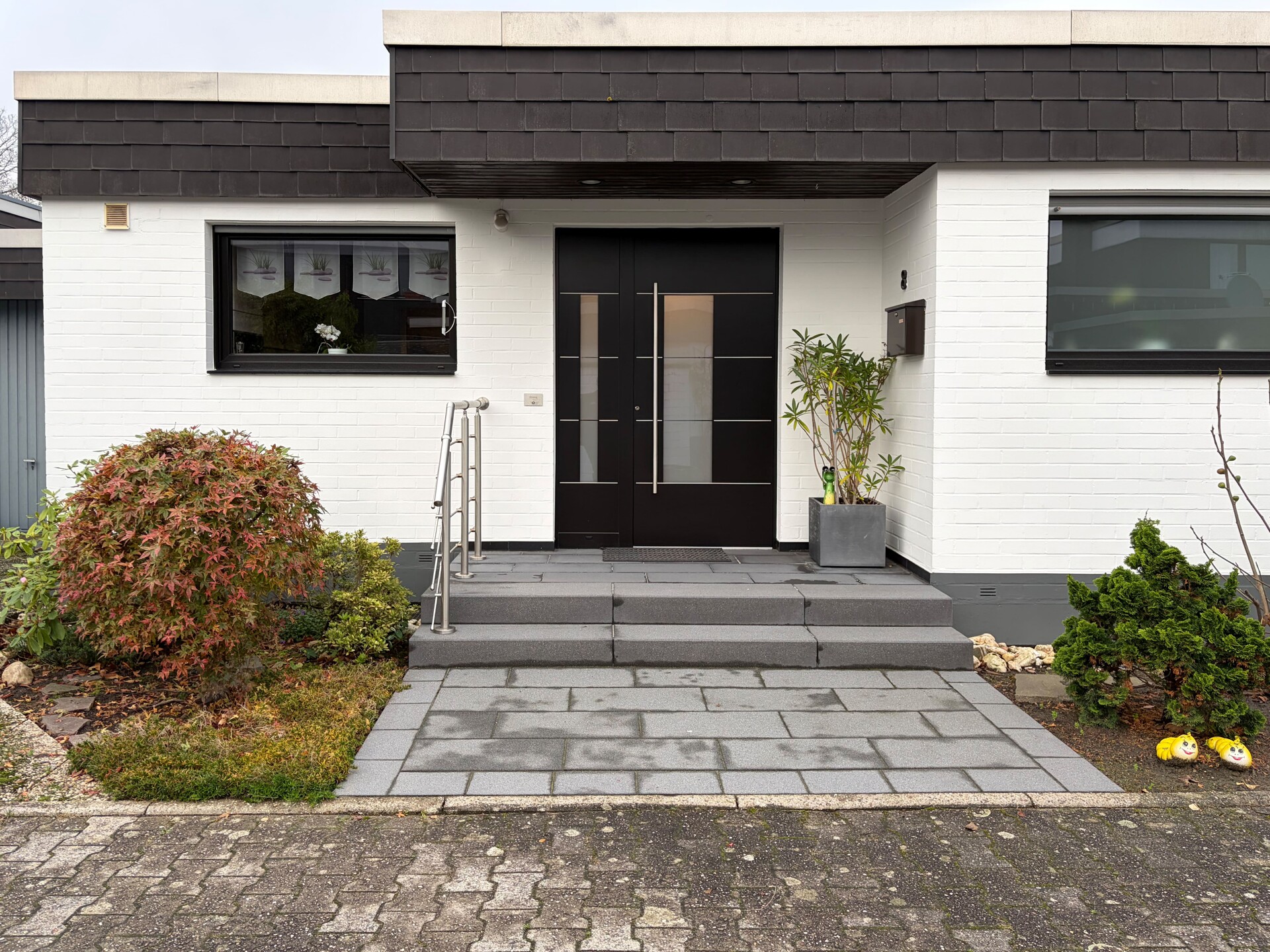 Dieser Flachdachbungalow in ausgezeichnetem Zustand begeistert vom ersten Moment an: top gepflegt, modern ausgestattet und mit einem Wohngefühl, das sofort überzeugt. Auf ca. 127 m² erwartet Sie ein heller, großzügiger Wohn-/Essbereich mit Klimaanlage und direktem Zugang zur sonnigen Terrasse – perfekt für entspannte Stunden im Freien. Die Küche ist ideal angebunden, bis zu drei behagliche Schlafzimmer sorgen für Rückzugsmöglichkeiten; eines davon mit Klimaanlage und eigenem Bad. Ein zusätzliches Gästezimmer und ein Gäste-WC runden das Erdgeschoss ab. Der uneinsehbare Garten ist ein echtes Highlight: pflegeleicht, liebevoll angelegt und ein Ort voller Ruhe. Im beheizten Kellergeschoss eröffnet sich ein weiteres Plus: ein großzügiges Hobby- bzw. Billardzimmer, ein Gästezimmer, ein Hauswirtschaftsraum sowie eine moderne Saunalandschaft mit Dusche, WC und direktem Terrassenzugang – ideal für Wellness zu Hause. Eine vor 2 Jahren gestrichene Fassade, die 5-kWp-PV-Anlage (Bj. 2023, Einspeisung ), Garage und Stellplatz unterstreichen den hervorragenden Gesamtzustand. Ein Haus, das sofort begeistert – stilvoll, komfortabel und bereit für seine neuen Bewohner.