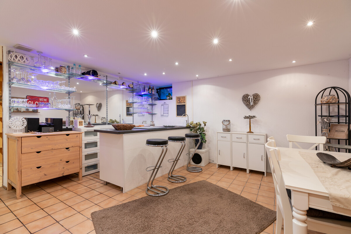 Im Untergeschoss des Hauses befinden sich die beiden zusätzlichen Räume, die zu Wohnzwecken umgebaut wurden sowie ein weiteres Duschbad. Gute Möglichkeiten, sich mal aus dem Geschehen im Erdgeschoss zurückzuziehen, in Ruhe einem Hobby nachzugehen oder ein HomeOffice einzurichten. Außerdem bietet hier eine zweite, überdachte Terrasse die Gelegenheit, auch bei schlechtem Wetter schöne Stunden im Freien zu genießen! Zwei große Keller, von dem einer als Bar genutzt wurde, sowie Hauswirtschaftsraum und Heizung sind im UG ebenfalls untergebracht.