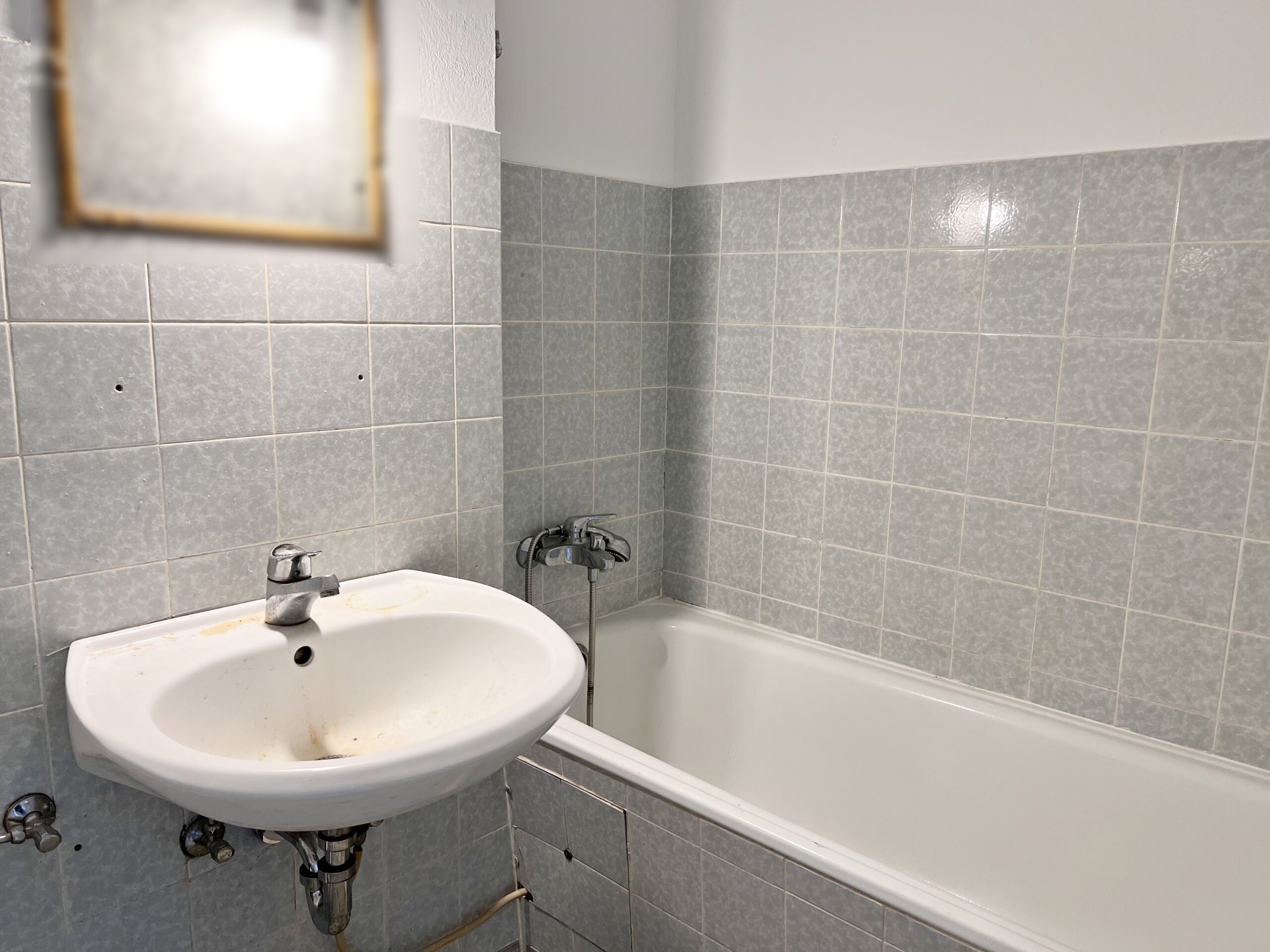 Die optimal geschnittene und sanierungsbedürftige Eigentumswohnung befindet sich im 8. Obergeschoss eines mit 2 Aufzügen ausgestatteten Hochhauses mitten in Refrath. Die Wohnung verfügt über ein großes, helles Wohnzimmer, ein Schlafzimmer, eine Küche, eine geräumige Diele sowie ein Bad mit Wanne. Sowohl vom Wohn- als auch vom Schlafzimmer kann man den großen Balkon betreten. Zusätzlich gibt es in der Diele einen Abstellraum. Zur Wohnung gehören ein Pkw-Stellplatz in der Tiefgarage sowie ein Kellerraum. Das Haus verfügt über einen Fahrradkeller.