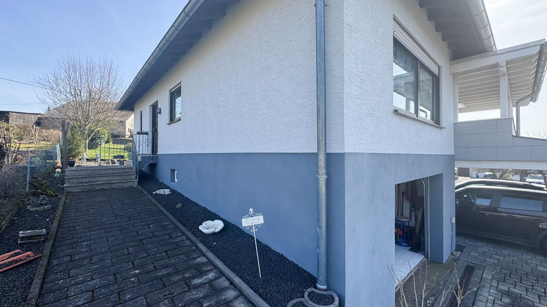 Mit einer Wohnfläche von ca. 108 m² bietet das Haus ausreichend Platz für komfortables Wohnen. Die Immobilie verfügt über insgesamt 4 Zimmer, darunter 2 Schlafzimmer und ein modernisiertes Badezimmer, das zwischen 2017 und 2019 erneuert wurde. Der Wohnbereich ist mit hochwertigen Parkett- und Fliesenböden ausgestattet. Die neue Terrasse mit Überdachung und integrierten Lichtkuppeln lädt zum Entspannen ein und ermöglicht einen schönen Blick in die Ferne. Das Grundstück wurde vollständig überarbeitet: Die Zufahrt aus Verbundsteinen sowie die Gehwege wurden zwischen 2018 und 2019 erneuert. Ein elegantes, handgefertigtes Edelstahlgeländer ziert die Gartentreppe. Der Zugang wird durch ein Doppelcarport, das 2018 neu errichtet wurde, komfortabel ergänzt. Diese Immobilie steht ab sofort zur Verfügung und bietet ein ideales Zuhause für Familien, die Wert auf Qualität und eine ruhige Wohnlage legen.
