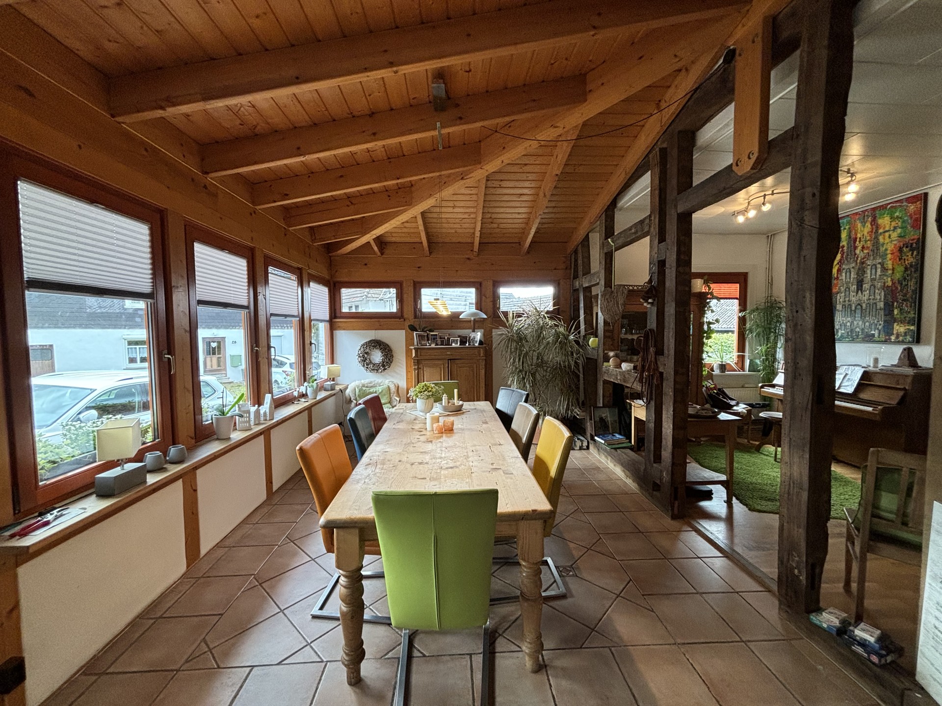 Dieses zauberhafte Fachwerkhaus bietet den perfekten Rückzugsort für alle, die eine Immobilie in einem überwiegend exzellenten Zustand und mit viel Liebe zum Detail suchen. Das Erdgeschoss des Hauses besticht durch seine großzügigen und lichtdurchfluteten Räume. Im Anbau befindet sich ein gemütlicher Wintergarten, der dank der bodentiefen Fenster den Blick in den traumhaften Garten freigibt. Hier sorgt eine Fußbodenheizung auch an kalten Tagen für wohlige Wärme. Das luxuriöse Badezimmer im Erdgeschoss lässt keine Wünsche offen: Eine bodentiefe Regendusche, eine Badewanne und hochwertige Materialien bieten Wellness-Feeling pur. Der offene Wohnbereich wird durch einen stilvollen Kamin komplettiert, der in den Wintermonaten für behagliche Stunden sorgt. Die moderne Küche ist das Herzstück des Hauses. Ausgestattet mit einer großzügigen Kochinsel und einer Theke, lädt sie zu geselligen Kochabenden und kulinarischen Highlights ein. Das Obergeschoss befindet sich in einem gepflegten Zustand, bedarf jedoch einer Renovierung, um das Potenzial des Hauses voll auszuschöpfen. Der geräumige Dachboden bietet weiteres Ausbaupotenzial, um zusätzlichen Wohnraum zu schaffen – ideal für ein weiteres Schlafzimmer, ein Arbeitszimmer oder einen Hobbyraum.