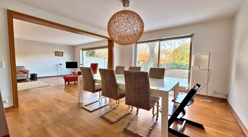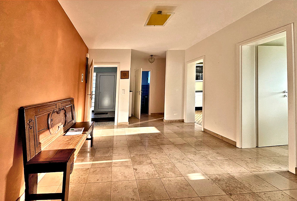 Im EG befindet sich der freundliche, helle und großzügige Eingangsbereich, ein Badezimmer mit Tageslicht, sowie das Wohnzimmer, das Esszimmer, jeweils mit schönem Ausblick auf die Terrasse und in den Garten sowie ein Schlaf-, Arbeits- oder Wohnzimmer.