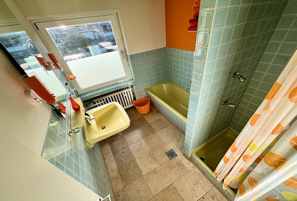 • Badausstattung: Dusche, Badewanne, Fenster im Badezimmer