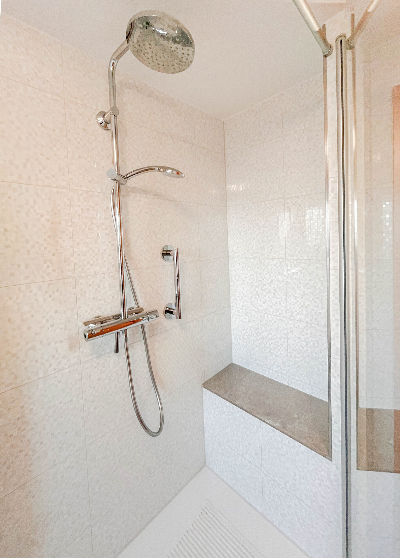 – nahezu barrierefreies Duschbad (5 cm Einstiegshöhe)