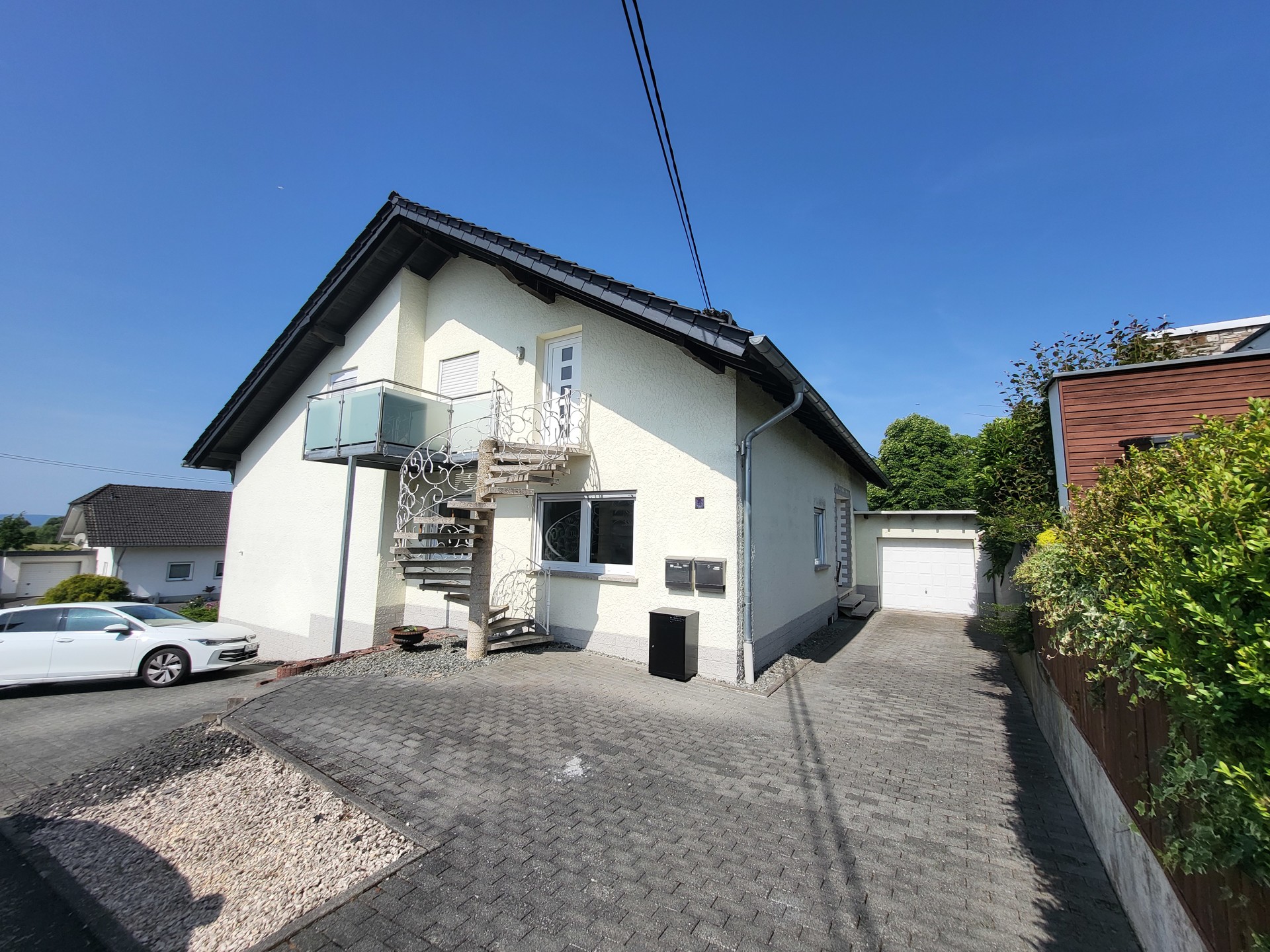 Jede der drei Wohneinheiten verfügt über einen separaten Eingang und eine eigene Garage sowie Terrasse bzw. Balkon. Die Gesamtwohnfläche beträgt ca. 343 m².