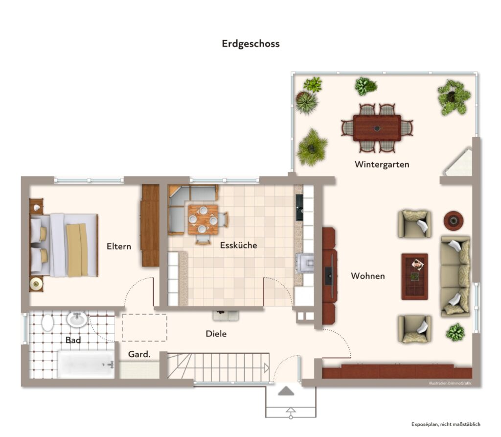Im Erdgeschoss ist das Wohnen auf einer Ebene möglich: