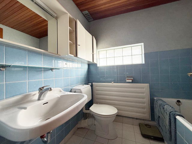 Die Bäder befinden sich im Zustand des Ursprungsbaujahres und sind mit einer Badewanne, WC und Waschbecken ausgestattet. Zusätzlich ist im Keller eine Dusche vorhanden.