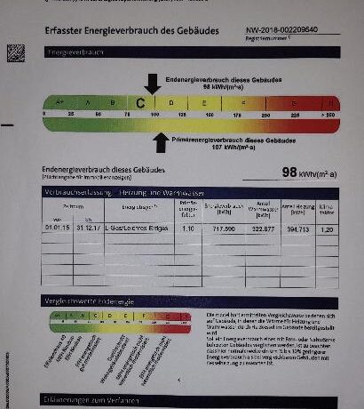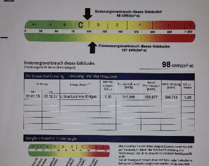 Endenergieverbrauch Wärme: 98 kWh/(m²a) inklusive Warmwasser