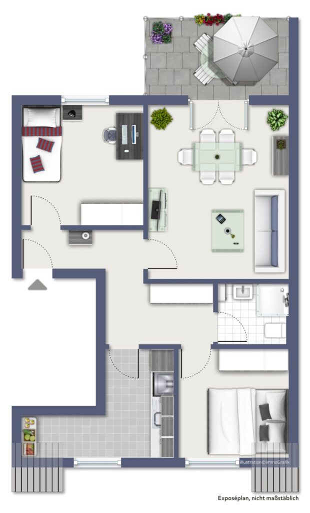 + Großer Balkon mit grünem Ausblick