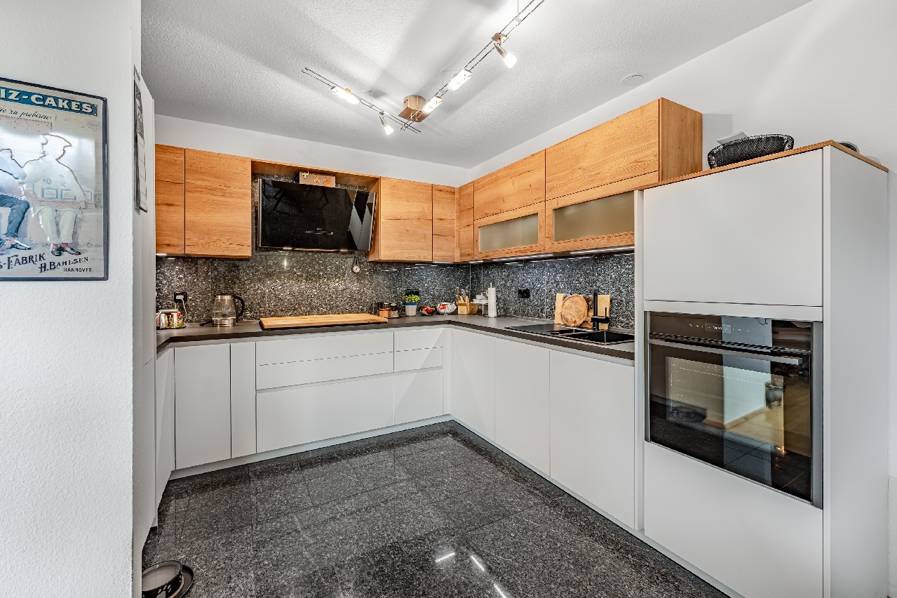 Diese Maisonette-Wohnung erstreckt sich über das 2. Obergeschoss sowie das ausgebaute Galeriegeschoss einer gepflegten Wohnanlage am Rande eines Naturschutzgebiets. Mit einer Wohnfläche von ca. 107 m², zwei Balkonen, einer beeindruckenden Raumhöhe durch die offene Galerie und einer hochwertigen Ausstattung bietet diese Immobilie außergewöhnlichen Wohnkomfort – sowohl für Kapitalanleger als auch für Eigennutzer mit Anspruch. Der Zugang zur Wohnung erfolgt über das 2. Obergeschoss. Hier eröffnet sich ein großzügiger Wohnbereich mit Zugang zum großen Balkon in Westausrichtung. Über ein großes Schiebetürelement gelangen Sie ins Freie. Die Küche und der Essplatz sind durch eine elegante Glasschiebetür vom Wohnraum separiert. Die moderne Einbauküche wurde erst im vergangenen Jahr von