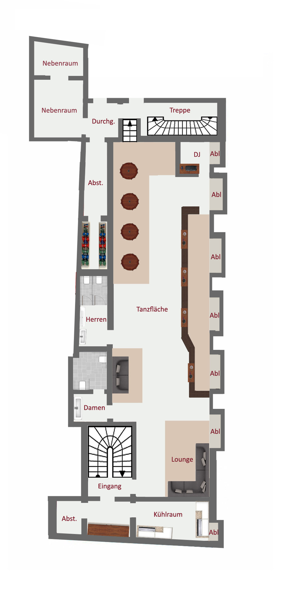 Optional: Das gesamte bestehende Inventar und Interieur kann bei Interesse übernommen werden – etwa für Betreiber, die ein Veranstaltungs- oder Gastronomiekonzept fortführen möchten.