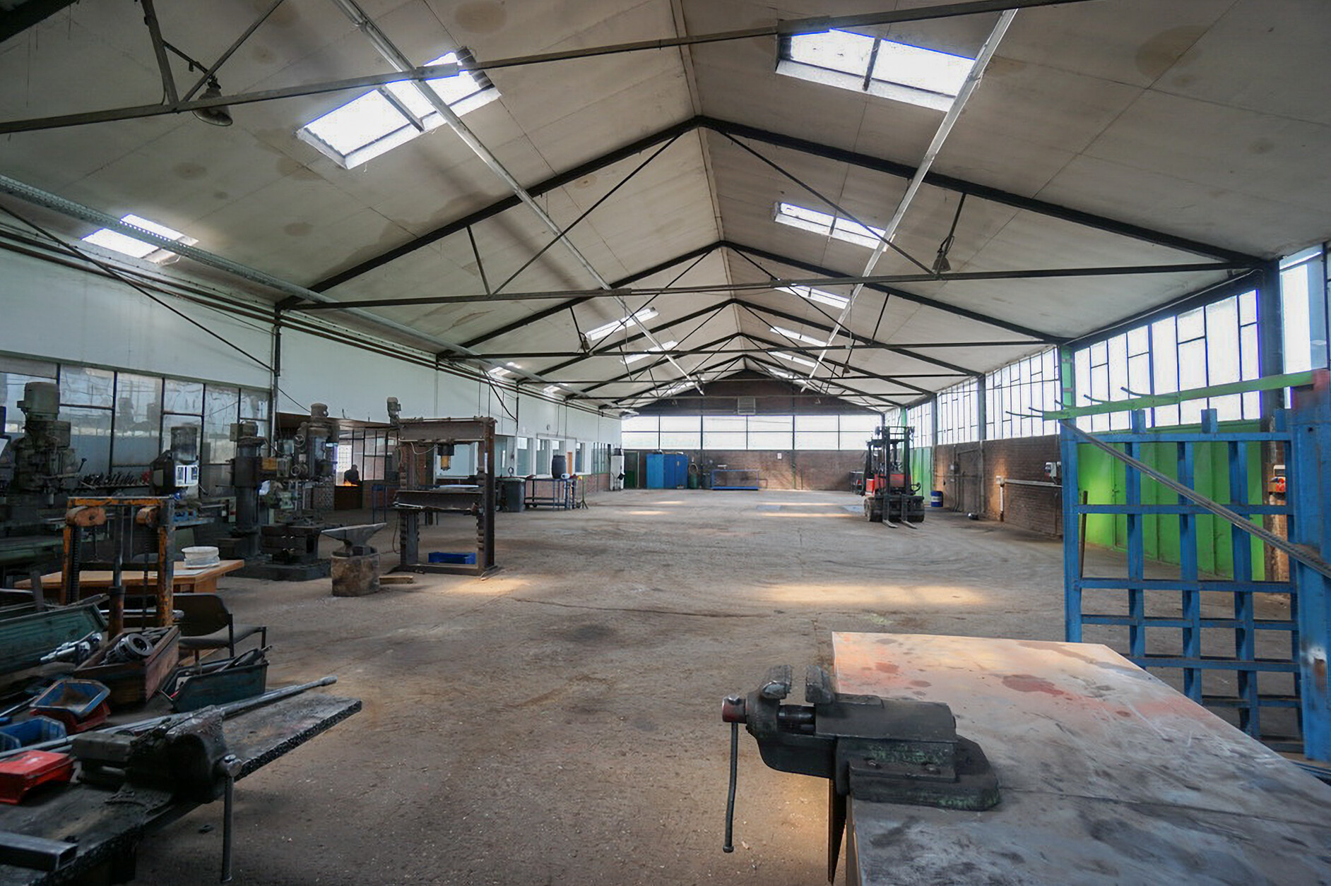 Die Halle ist funktional geschnitten und praxisorientiert ausgestattet. Neben der großzügigen Hauptfläche verfügt das Objekt über einen separaten Bürobereich, der ideale Bedingungen für Verwaltung, Organisation oder Kundenempfang bietet. Darüber hinaus stehen Umkleideräume sowie Sanitäranlagen zur Verfügung, was den Standort besonders attraktiv für Betriebe mit Mitarbeiterverkehr macht und einen reibungslosen Betriebsablauf unterstützt.
