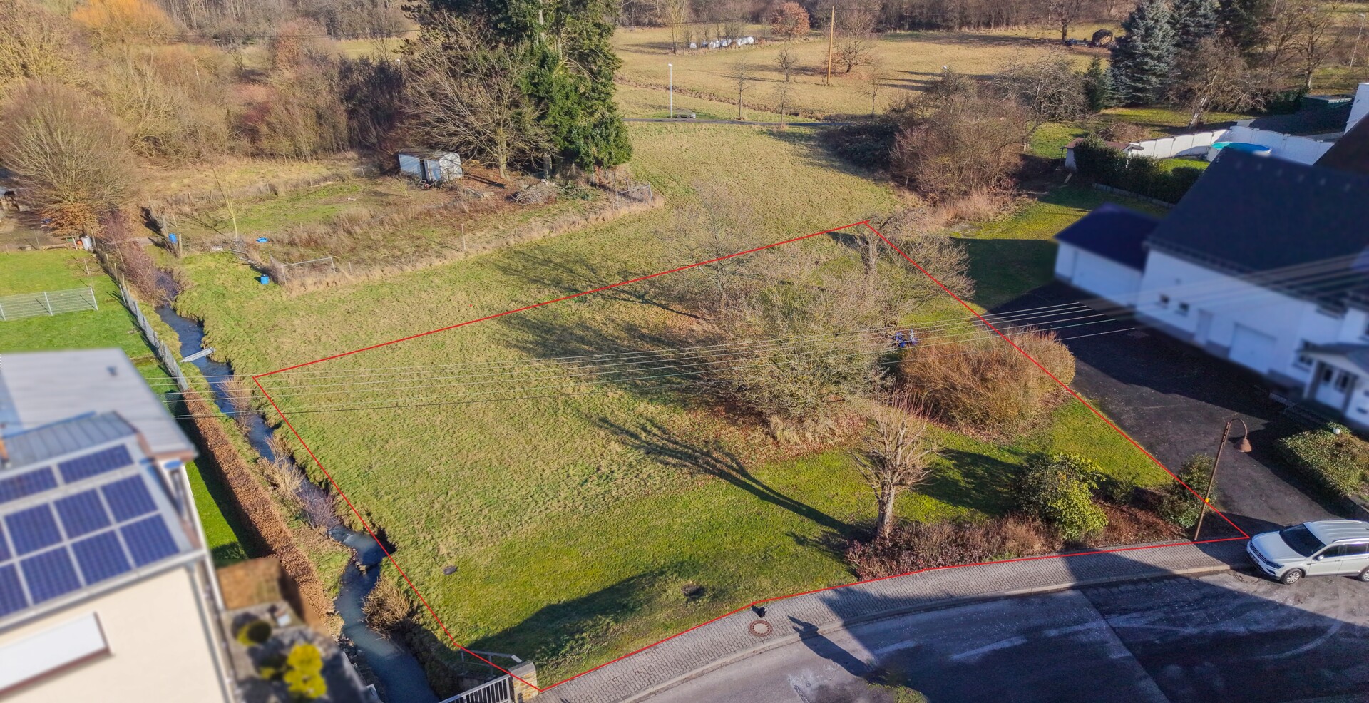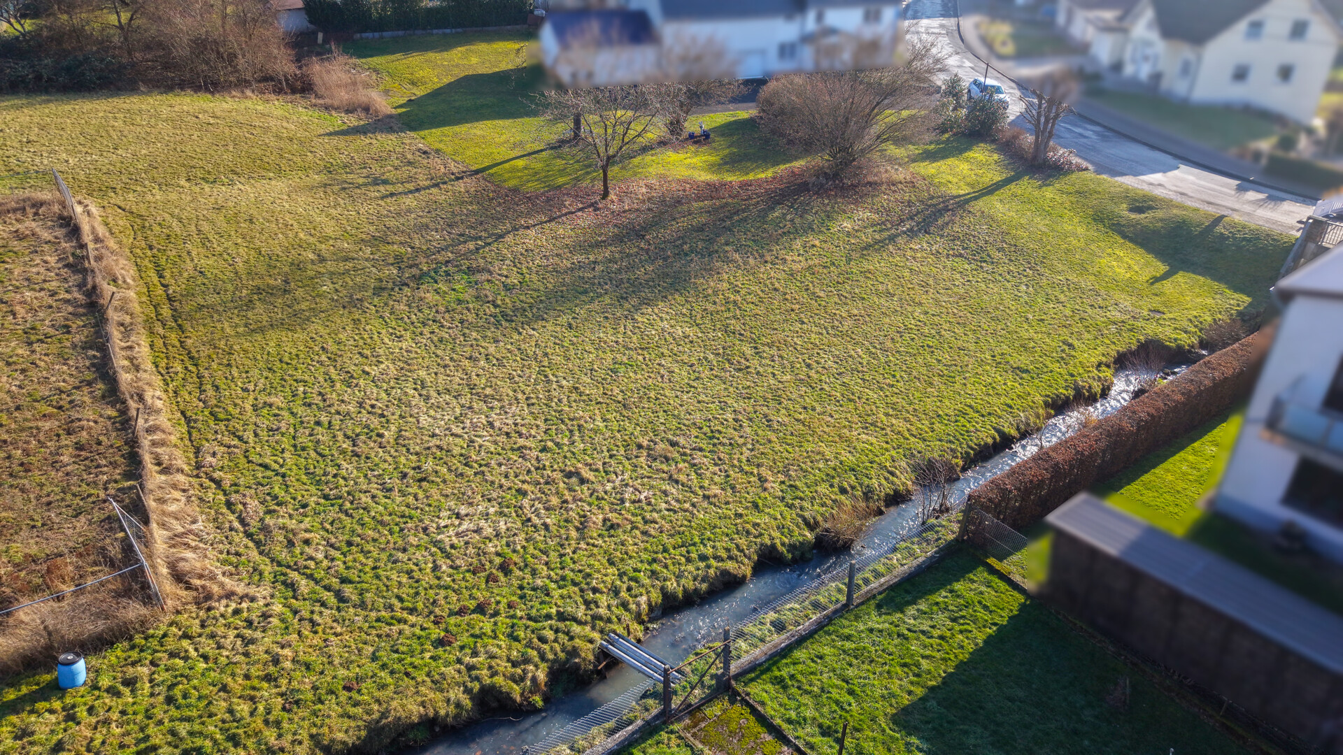 Dieses ca. 899 m² große, vollständig erschlossene Baugrundstück überzeugt durch seine ruhige, naturnahe Lage. Zur Straßenseite hin besteht ein leichtes Gefälle, während der hintere Grundstücksbereich eben ist.
