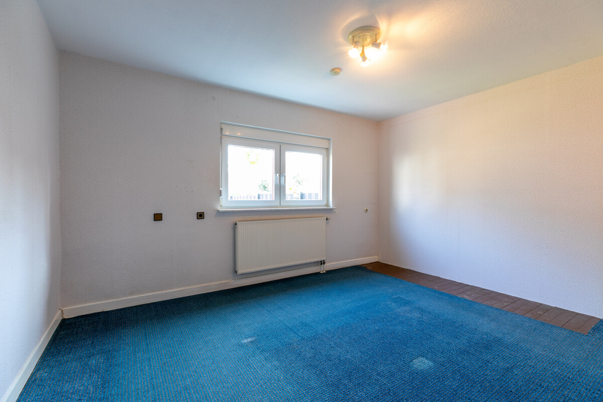 Das Obergeschoss beherbergt drei gut geschnittene Schlafzimmer. Ideale Voraussetzungen für Paare oder eine kleine Familie. Auch diese Räume lassen sich im Rahmen einer Sanierung modern und individuell gestalten. Ob gemütliches Schlafzimmer oder Gästezimmer, alles ist möglich! Hier sind vielfältige Nutzungsmöglichkeiten gegeben.