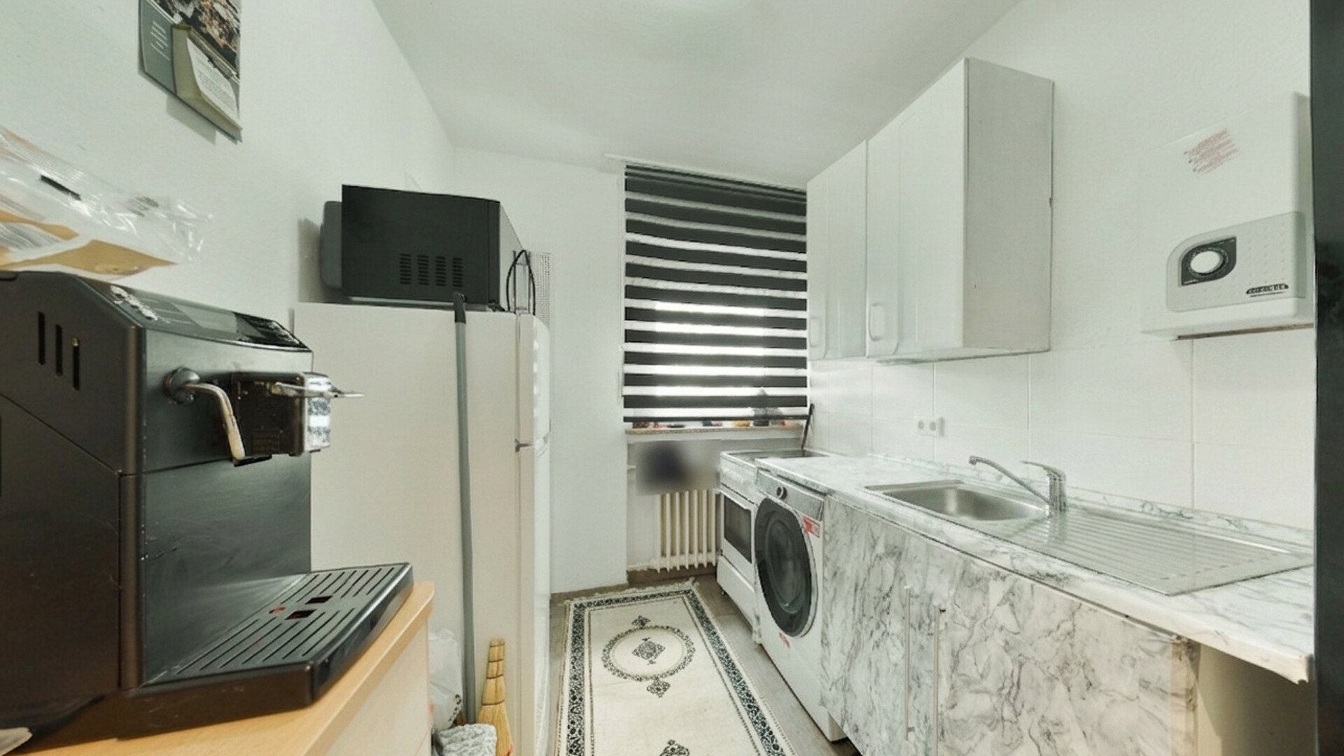 Die separate Küche bietet Raum für moderne Einbauten und ist funktional gestaltet. Das tagesbelichtete Badezimmer überzeugt durch ein Fenster und eine moderne Dusche, was für eine angenehme Belüftung und viel natürliches Licht sorgt. Ein Flur mit praktischen Stellflächen verbindet alle Räume harmonisch miteinander.