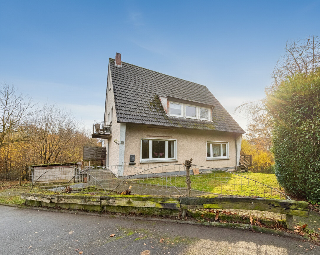 Die Immobilie wurde ca. 1962 in Massivbauweise auf einem ca. 2.402 m² großen Grundstück errichtet und bietet vielseitige Nutzungsmöglichkeiten. Das Zweifamilienhaus verfügt über eine gut durchdachte Raumaufteilung mit einer Wohnfläche von ca. 172 m², verteilt auf das Erd- und Dachgeschoss mit insgesamt sechs Zimmern. Im Erdgeschoss befinden sich ein Bad, ein großzügiges Wohnzimmer, ein Esszimmer mit Zugang zur Terrasse sowie zum Garten, eine Küche und ein weiterer großzügiger Raum. Das Obergeschoss umfasst drei Zimmer, einen Balkon, eine Küche sowie ein Badezimmer. Das Kellergeschoss bietet Ihnen zusätzlich vier Kellerräume sowie einen direkten Zugang zum Garten. Der pflegeleichte Garten lädt zum Entspannen und Verweilen ein. Ebenfalls steht Ihnen eine große Garage zu Verfügung. Das Objekt befindet sich in einem renovierungsbedürftigen Zustand, bietet jedoch erhebliches Potenzial zur individuellen Gestaltung und Wertsteigerung.